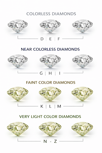 Diamonds graded G, H, I, and J fall into the near-colorless category. They appear white when viewed from the top, with only a slight warmth visible in certain lighting.