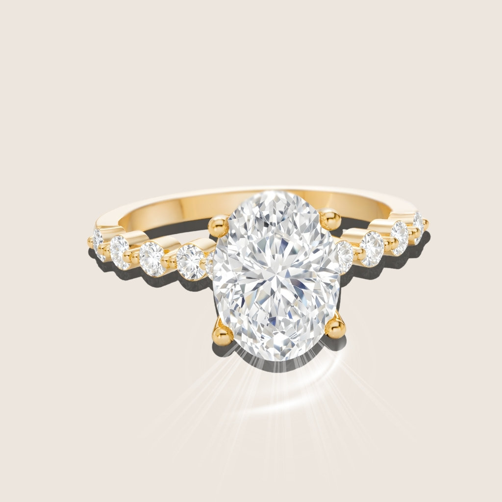 Like other brilliant cuts, high-quality oval diamonds reflect light beautifully with excellent fire and scintillation, resulting in dazzling sparkle from every angle. While some oval diamonds may display a subtle bow-tie effect (a faint dark area in the center), this can be minimized with proper cut proportions and craftsmanship.