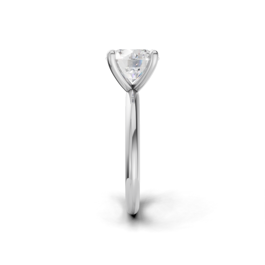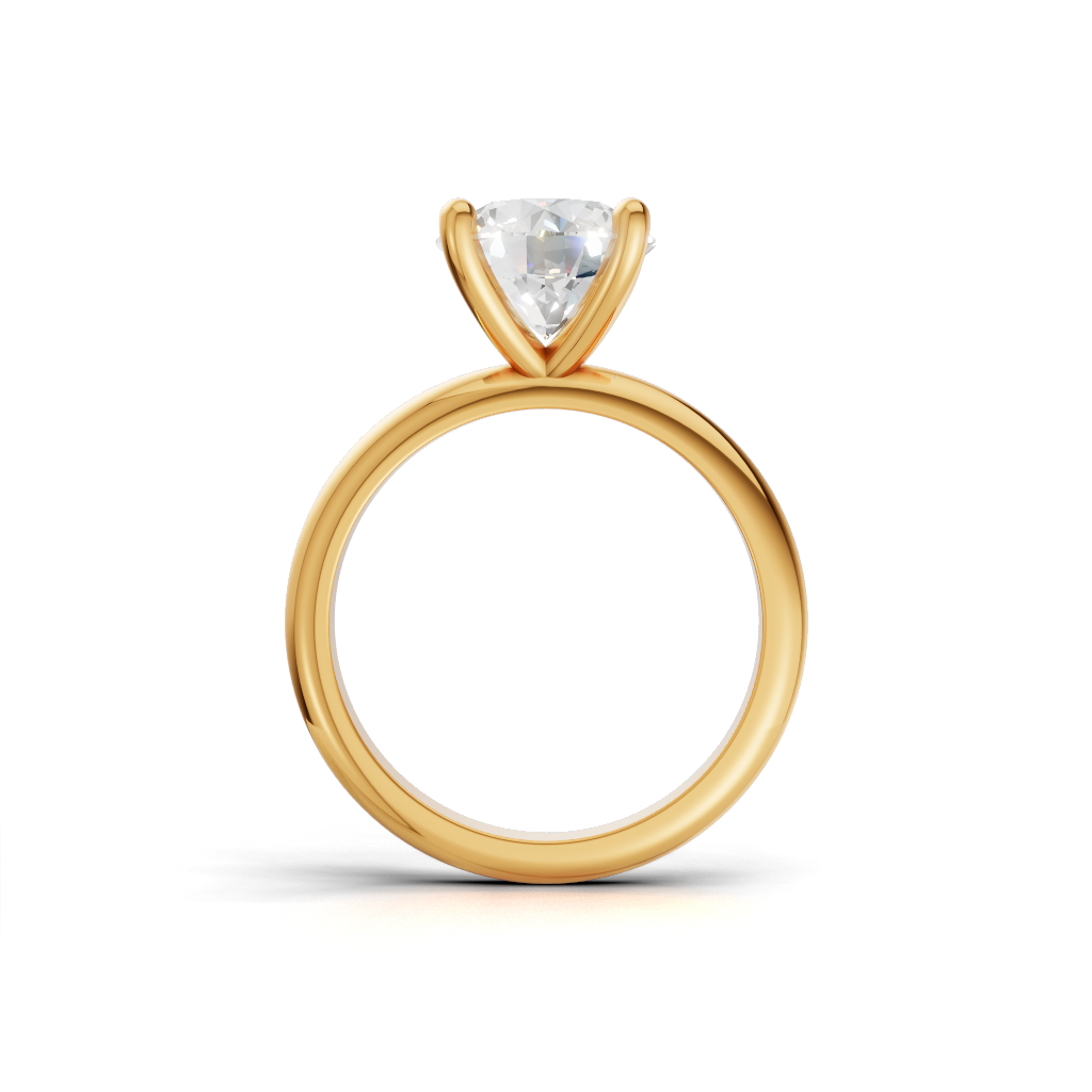 This is an elegant solitaire ring featuring a stunning oval-cut diamond. The oval shape is traditionally linked to eternity and the unfolding journey of love. Set in warm yellow gold, the design is both classic and subtle, symbolizing a deep, lasting, and intimate affection that is cherished privately.