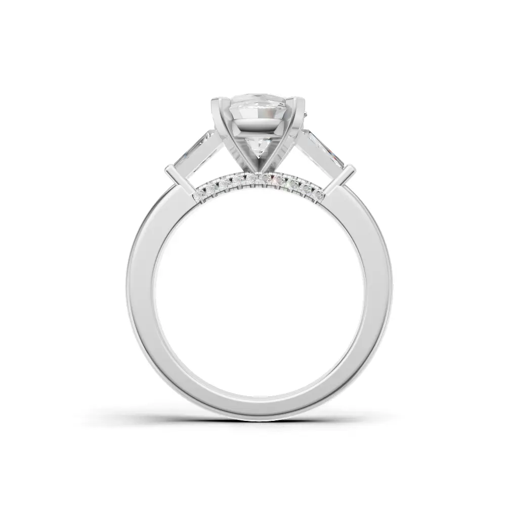 Celebrate timeless love with the Rosella Diamond Three Stone Engagement Ring by Merito Diamond. Its three radiant stones symbolize your past, present, and future with unmatched brilliance. A perfect blend of elegance for unforgettable proposals.
