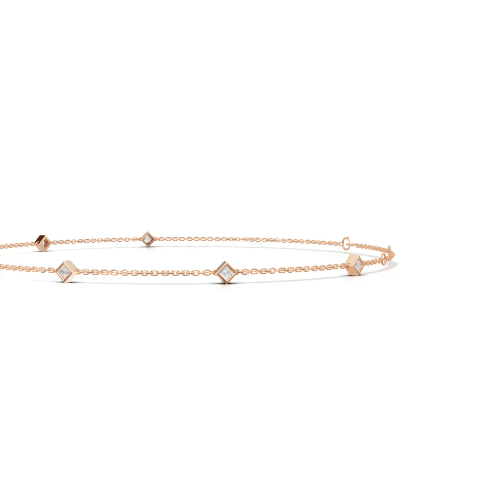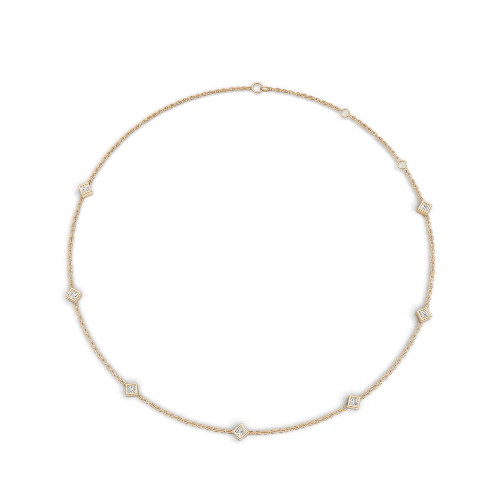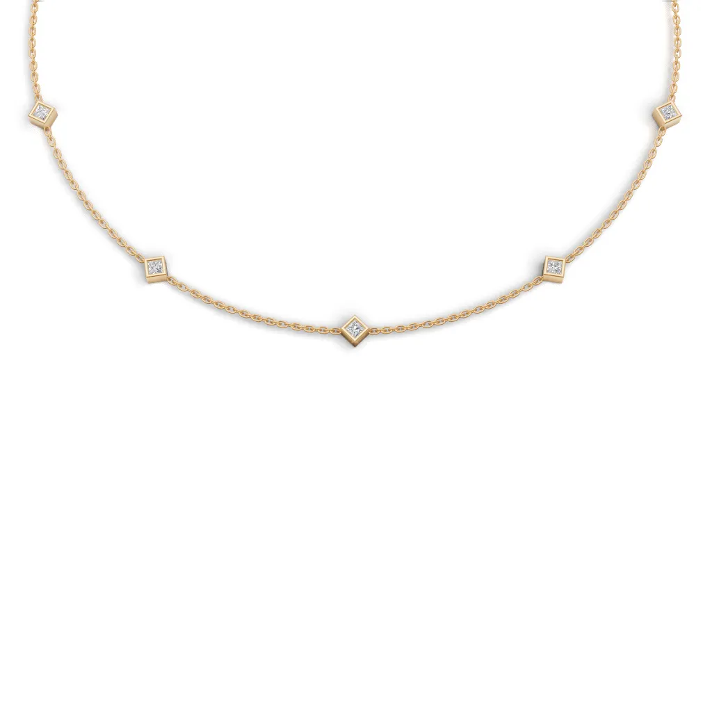 A fine gold chain adorned with evenly spaced square-cut diamond accents, offering a modern geometric charm with subtle, everyday sparkle.