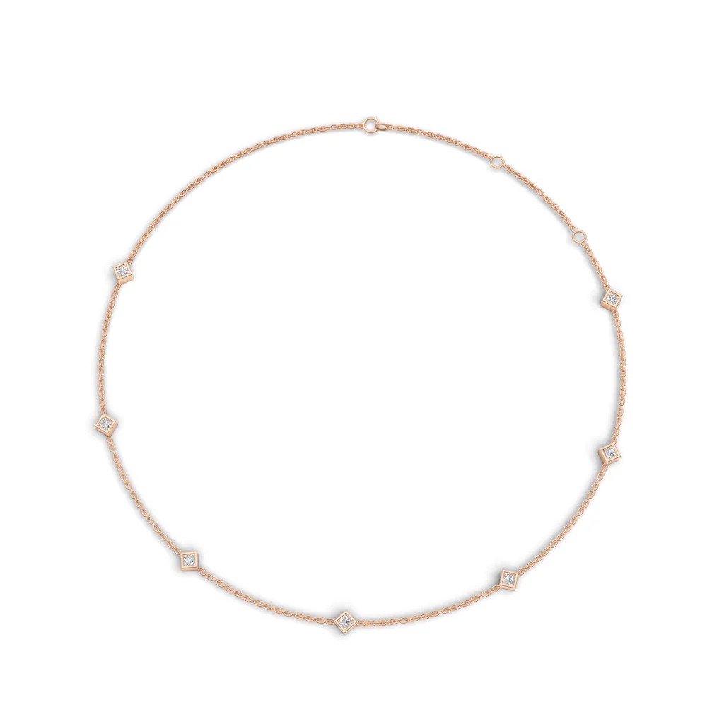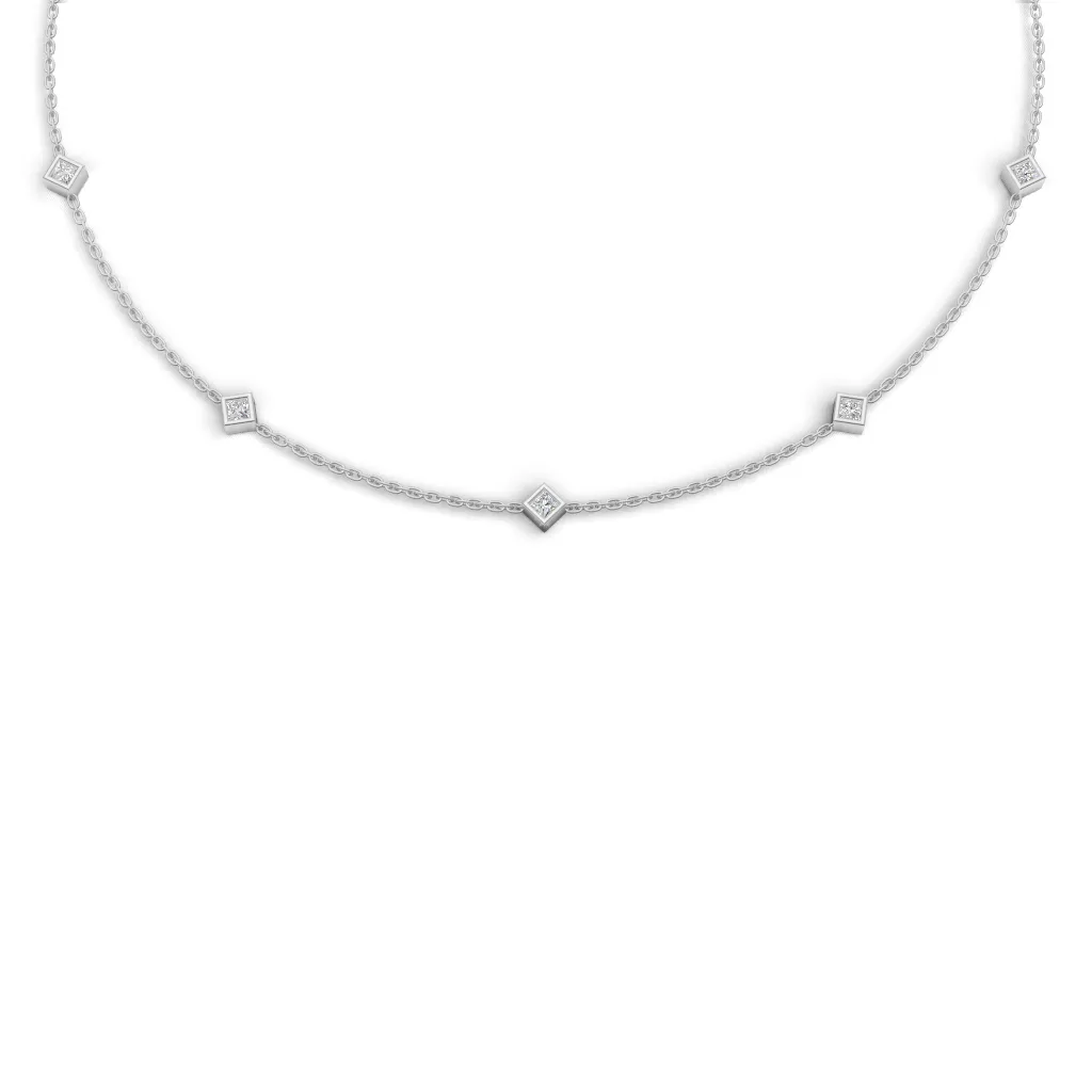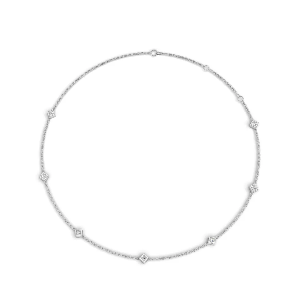 A fine gold chain adorned with evenly spaced square-cut diamond accents, offering a modern geometric charm with subtle, everyday sparkle.