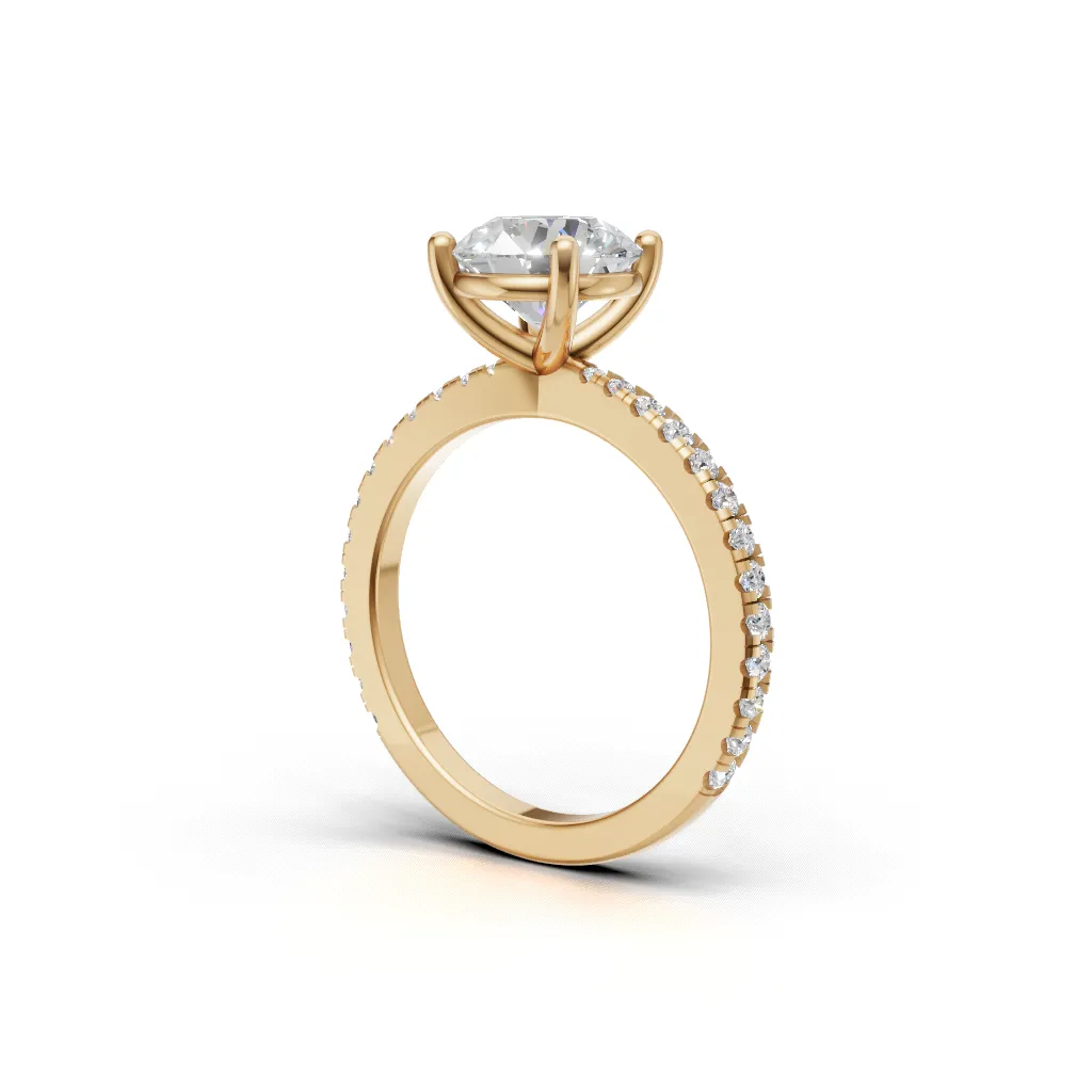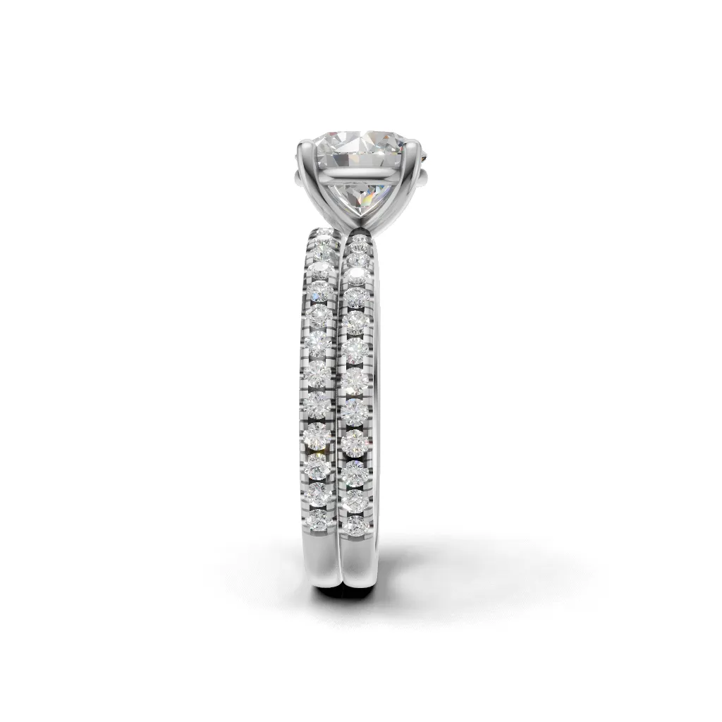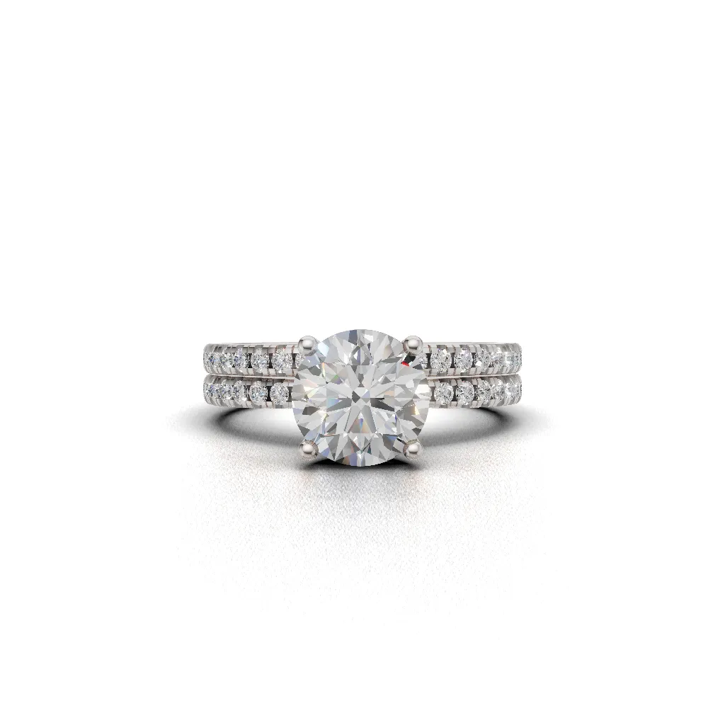 The center solitaire and side diamond band are crafted in a perfectly flush setting, giving it a smooth, seamless, and premium finish.
