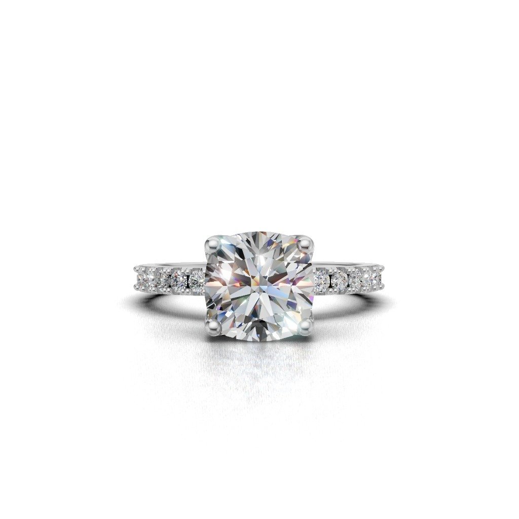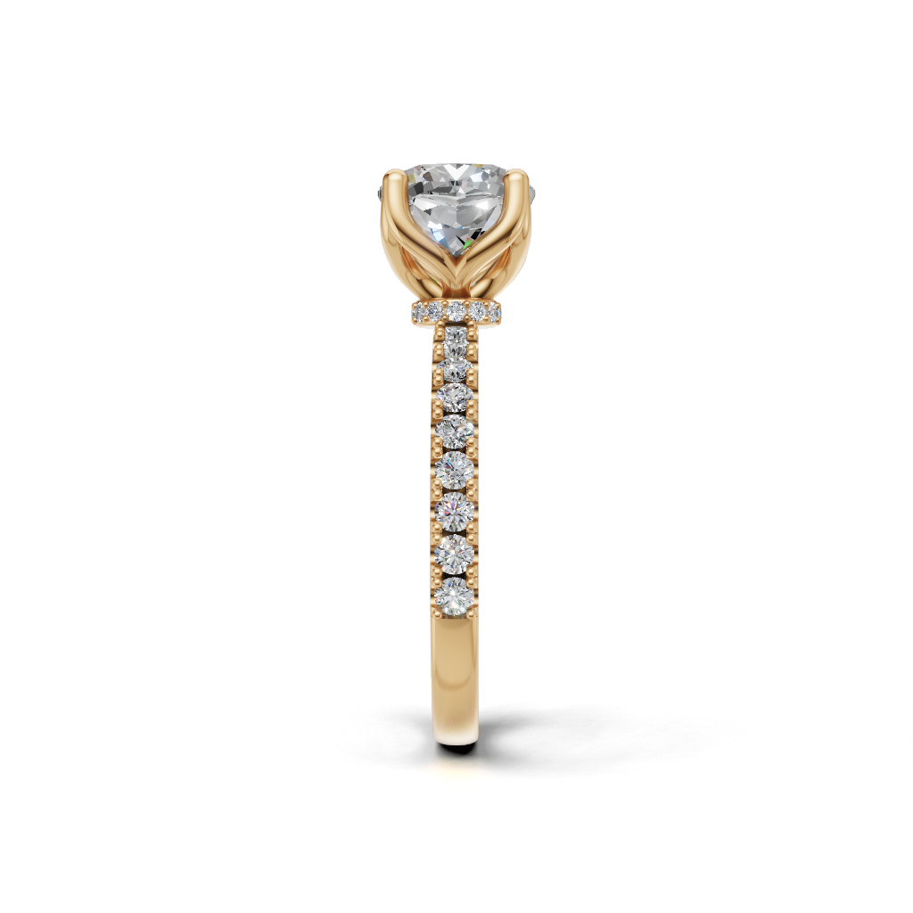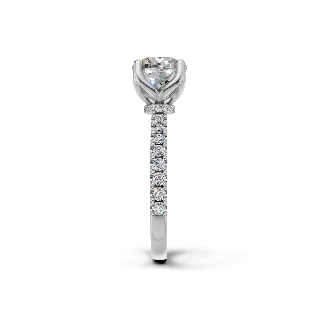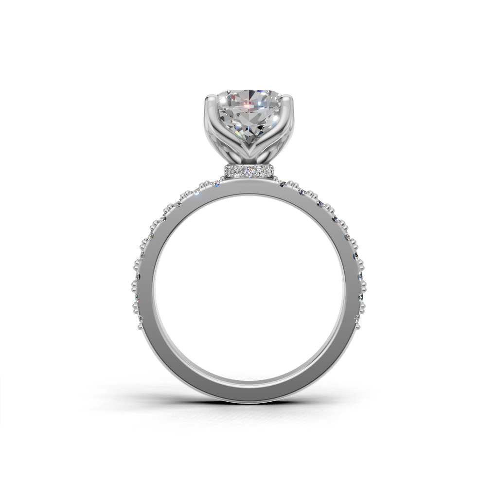 The Hidden Crown Diamond Engagement Ring by Merito Diamond features a sparkling hidden halo that shines from every angle. Its elegant design embodies timeless beauty and luxurious sophistication.