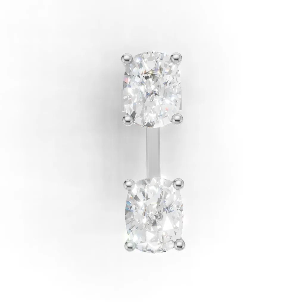 Elegant drop earring featuring two Cushion-cut gemstones in a sleek prong setting, connected by a polished metal stem for a modern and refined look.