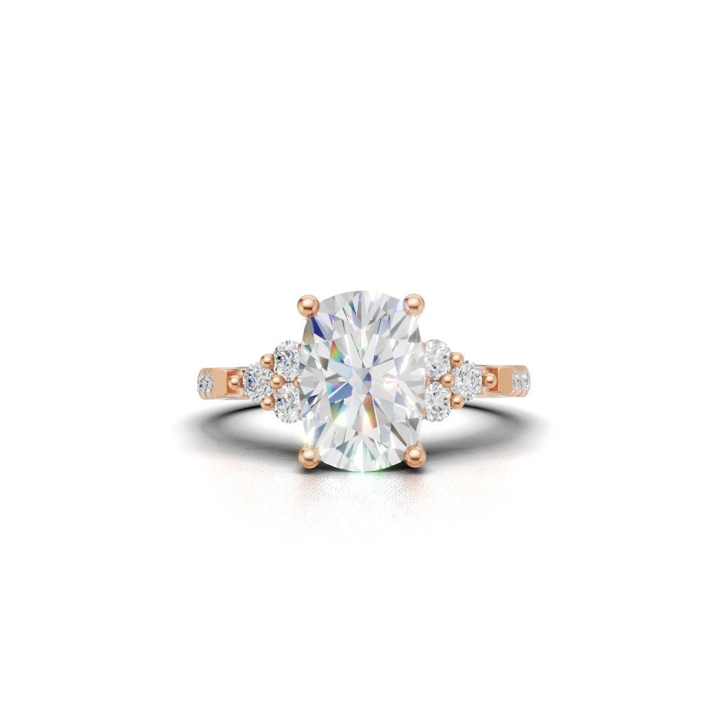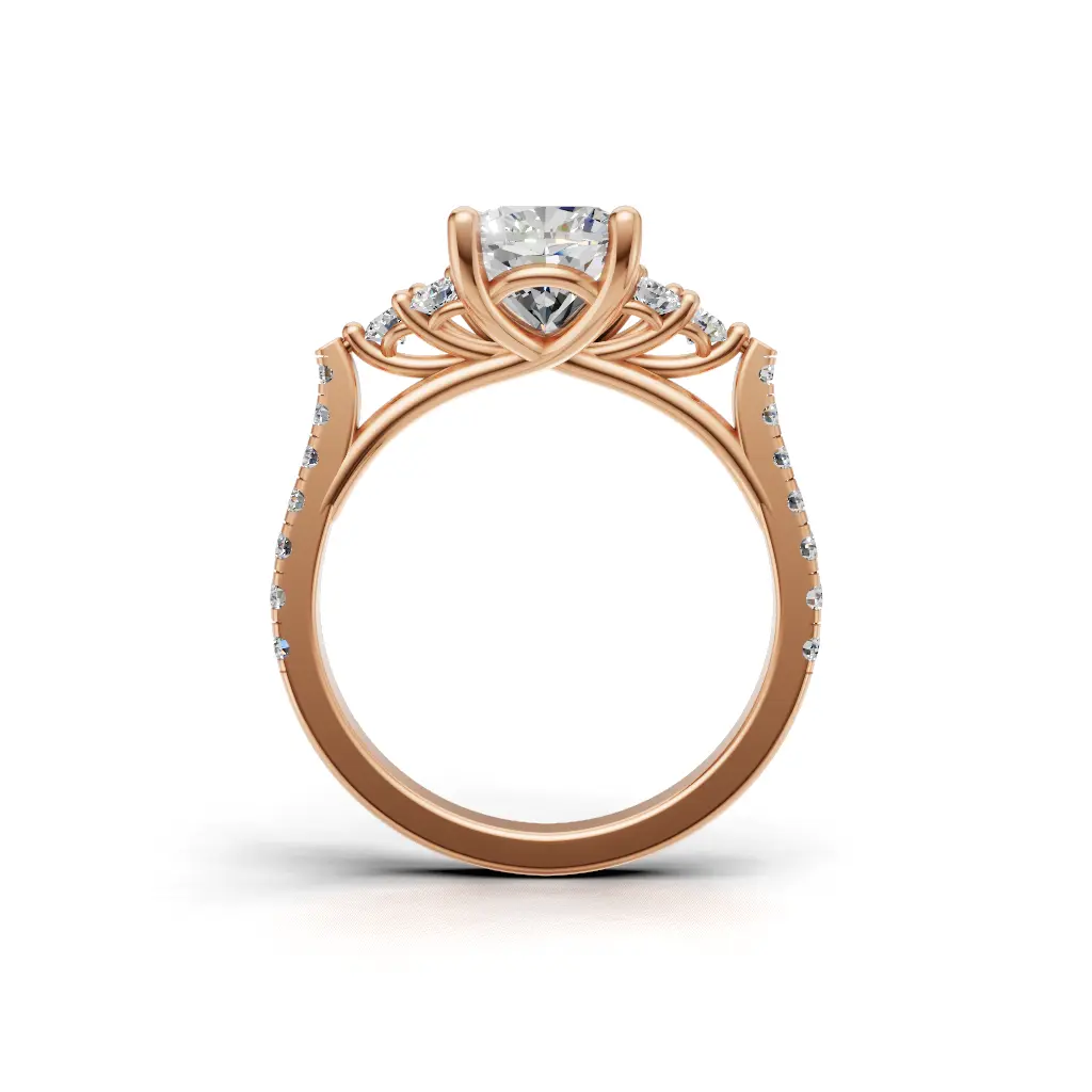 A luxurious gold ring featuring a diamond held in an intricate crown-style setting, accented with delicate side stones for a regal and timeless sparkle.”