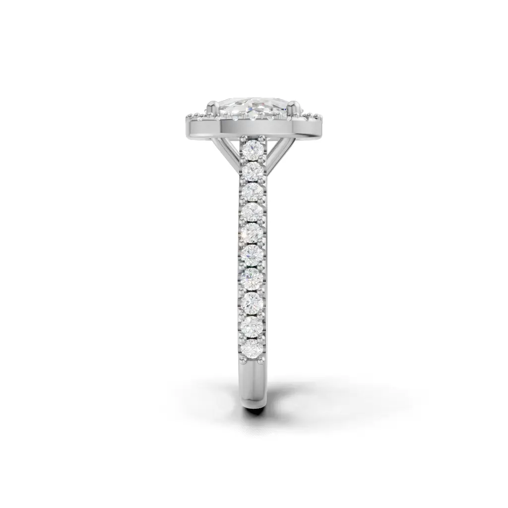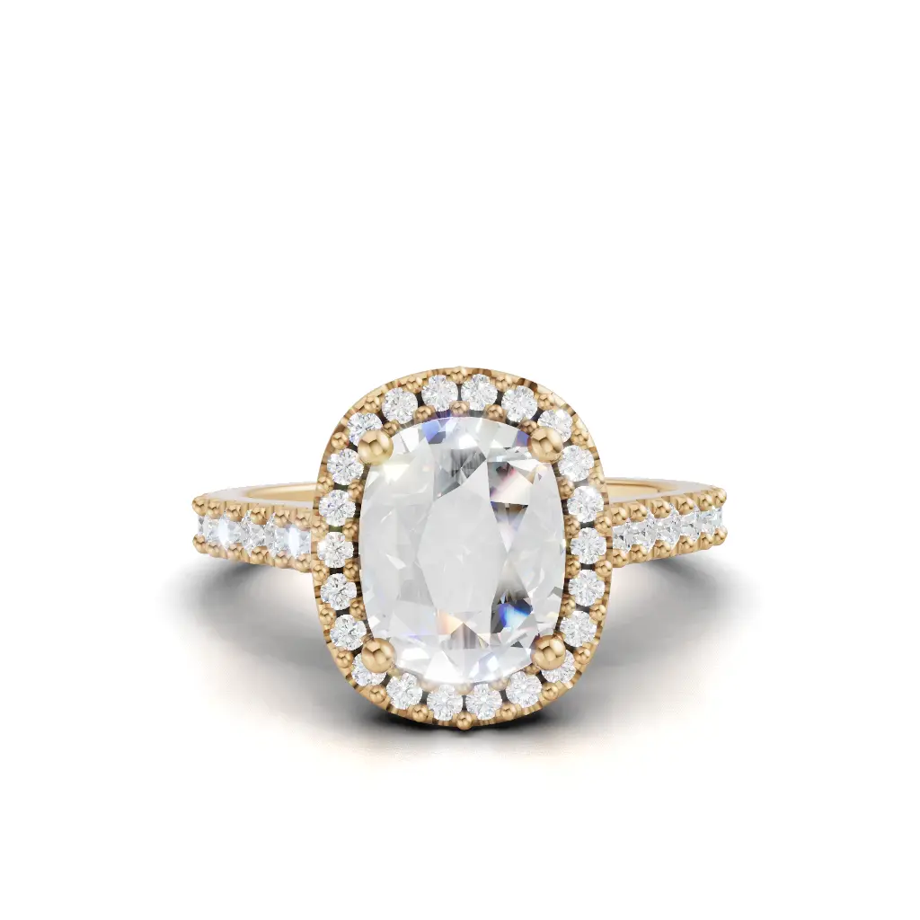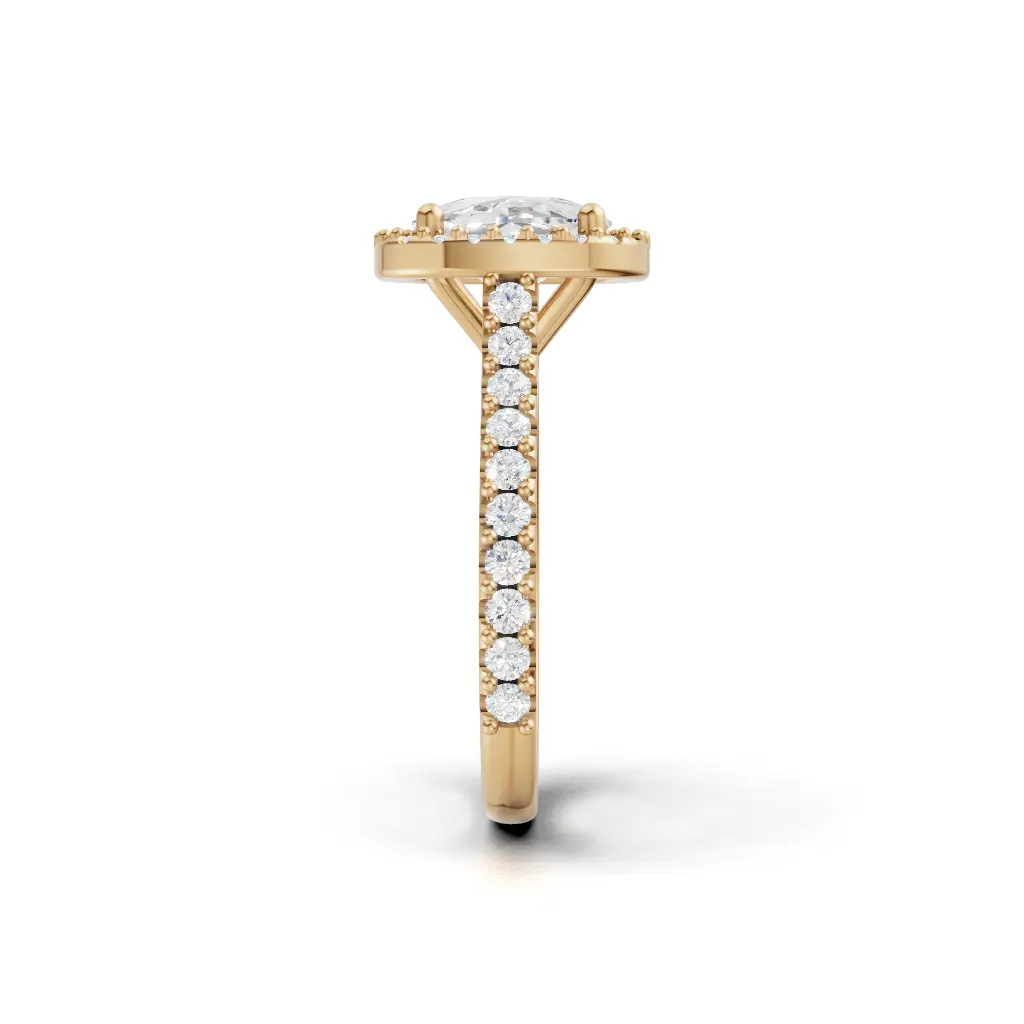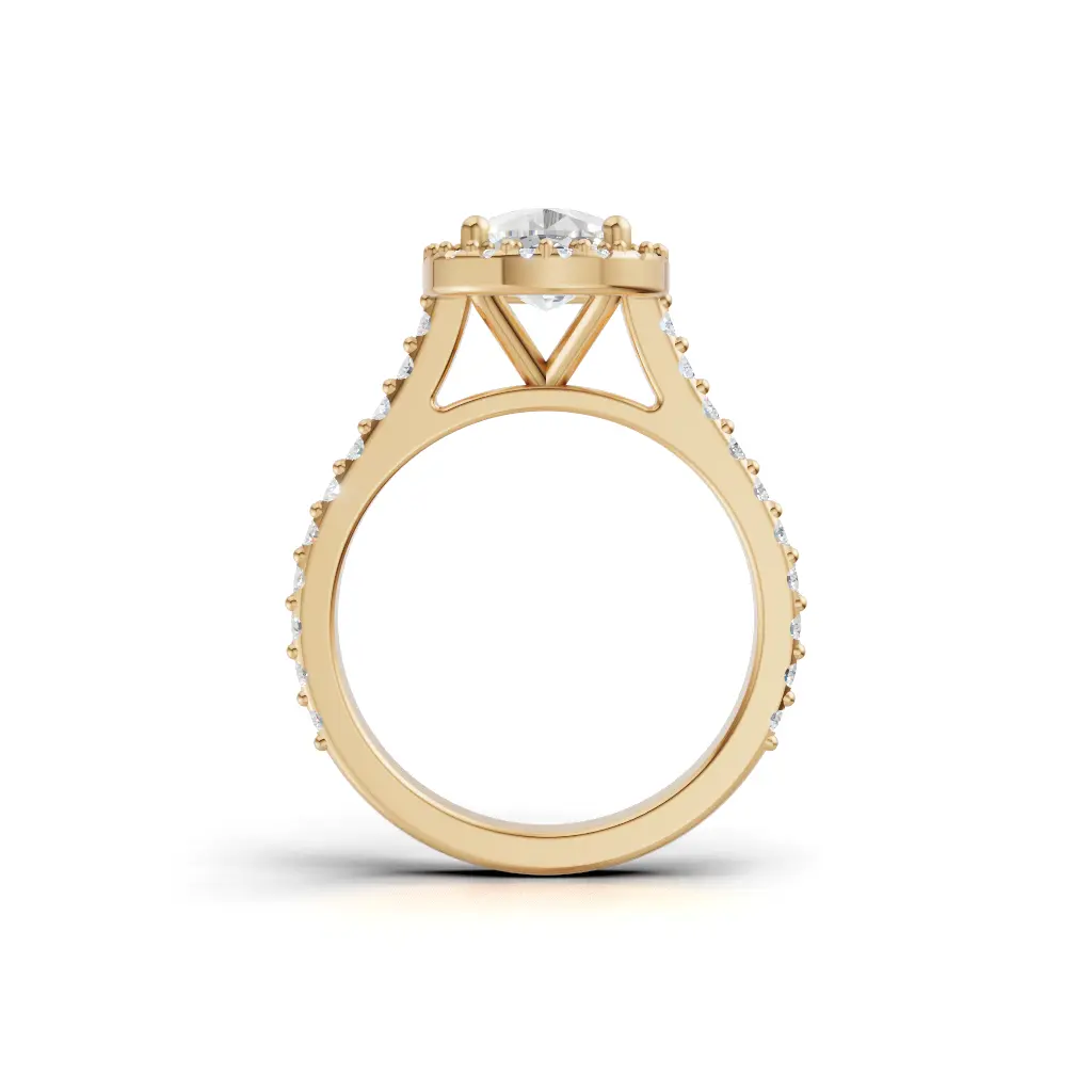 A round-center ring with a smooth curved band and sparkling stones outlining the design for an elegant, refined look.
