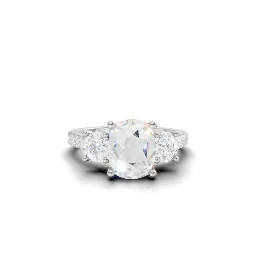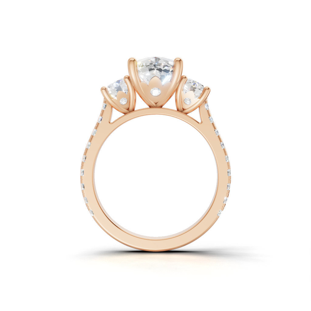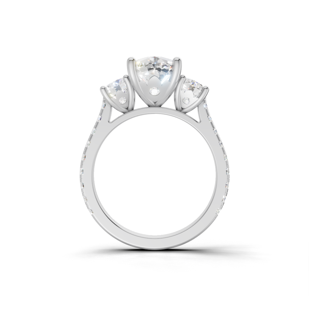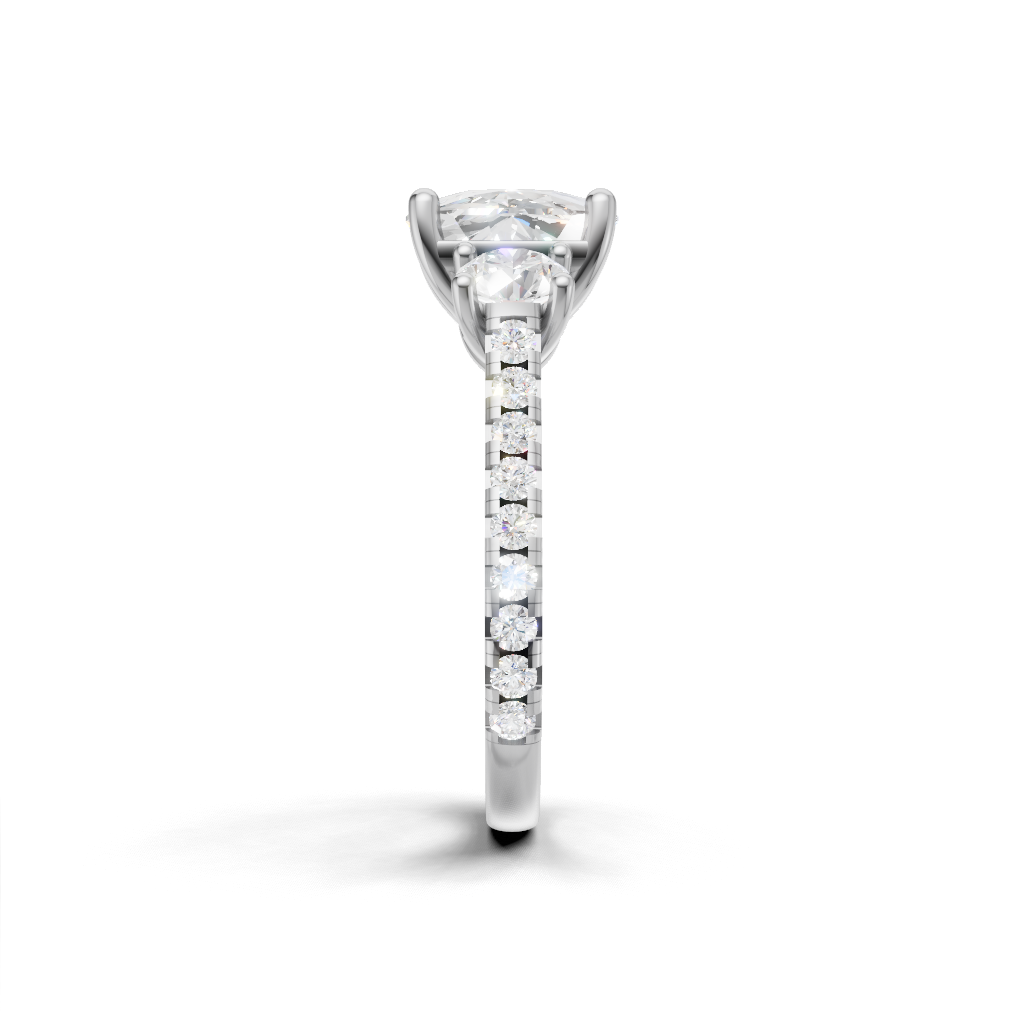 Elevate your love story with the Promise Trilogy Three-Stone Engagement Ring by Merito Diamond. Its three sparkling stones symbolize past, present, and future, creating timeless elegance. Perfect for unforgettable proposals.
