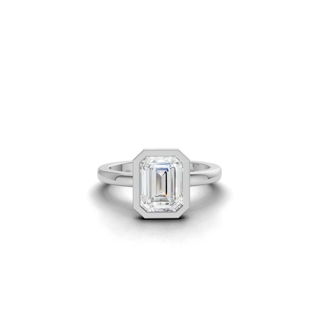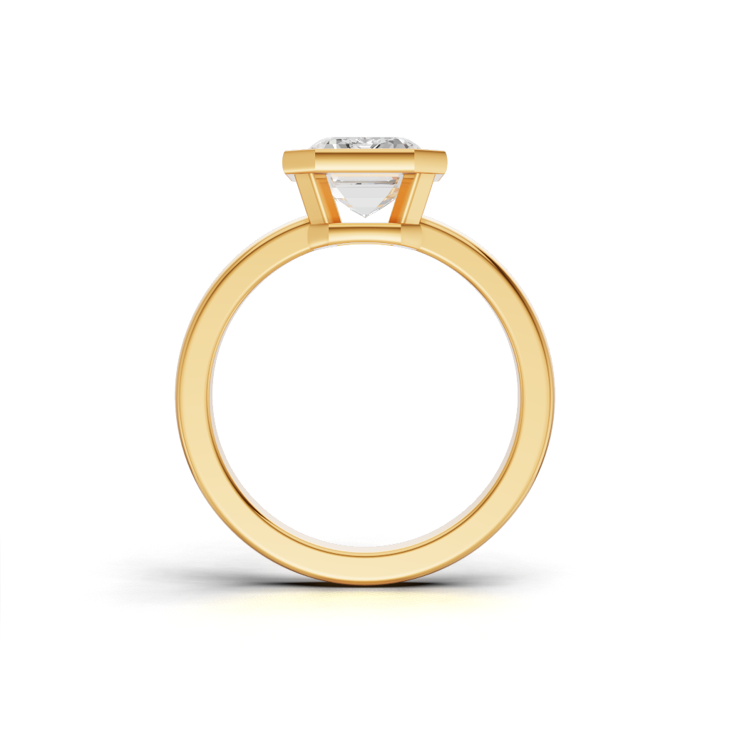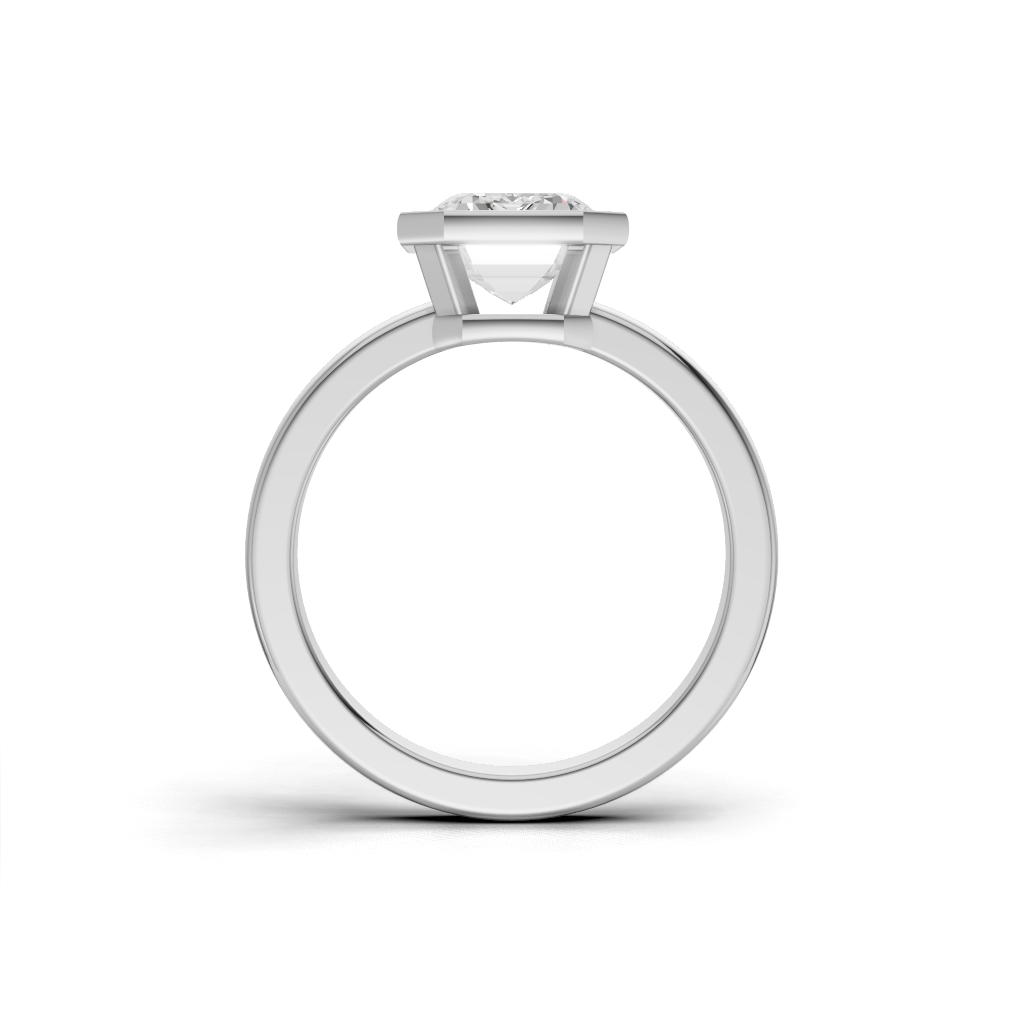 The Luna Bezel Engagement Ring features a stunning round brilliant diamond, beautifully encircled by a smooth and polished metal rim. This bezel setting design enhances the diamond’s brilliance while providing maximum protection to the center stone.