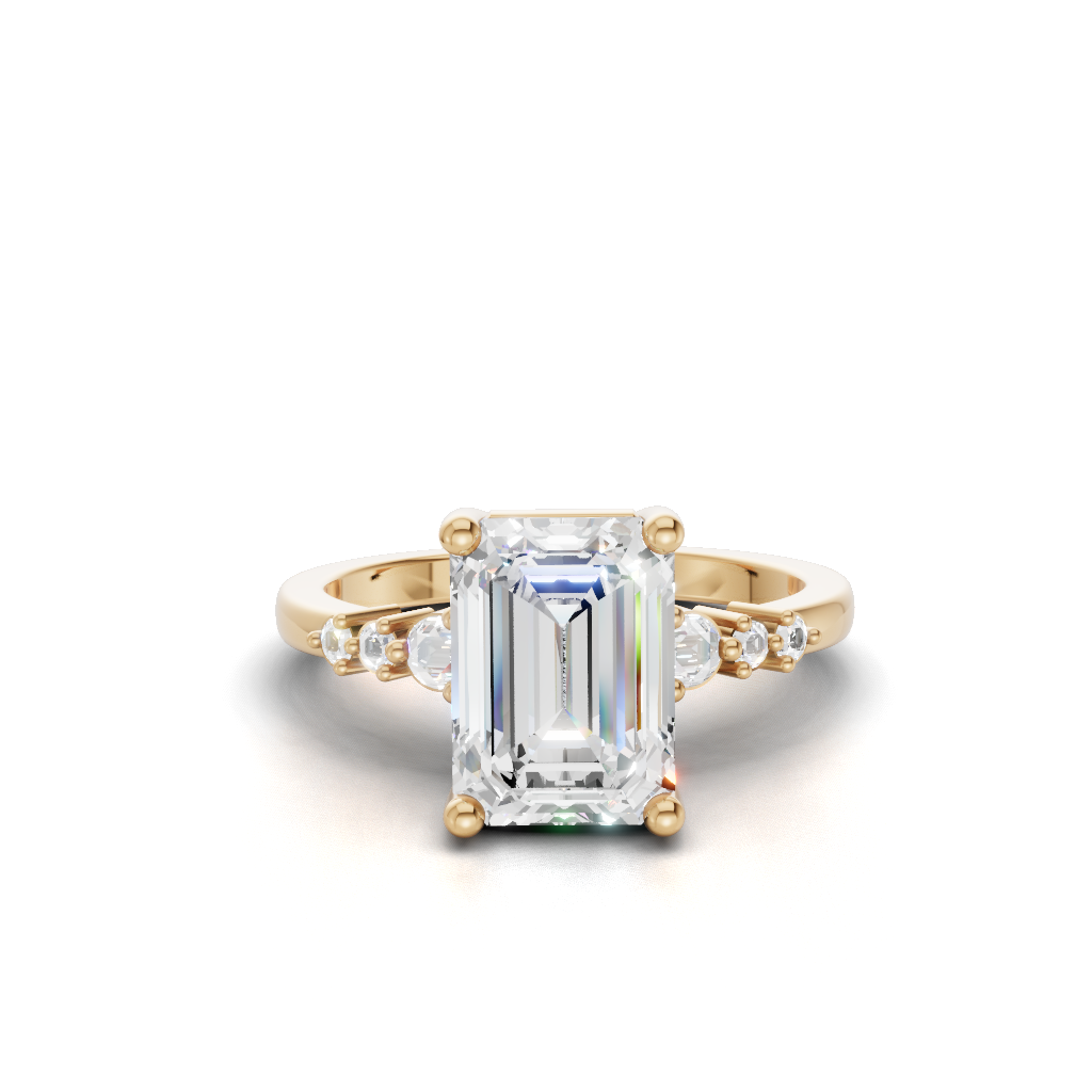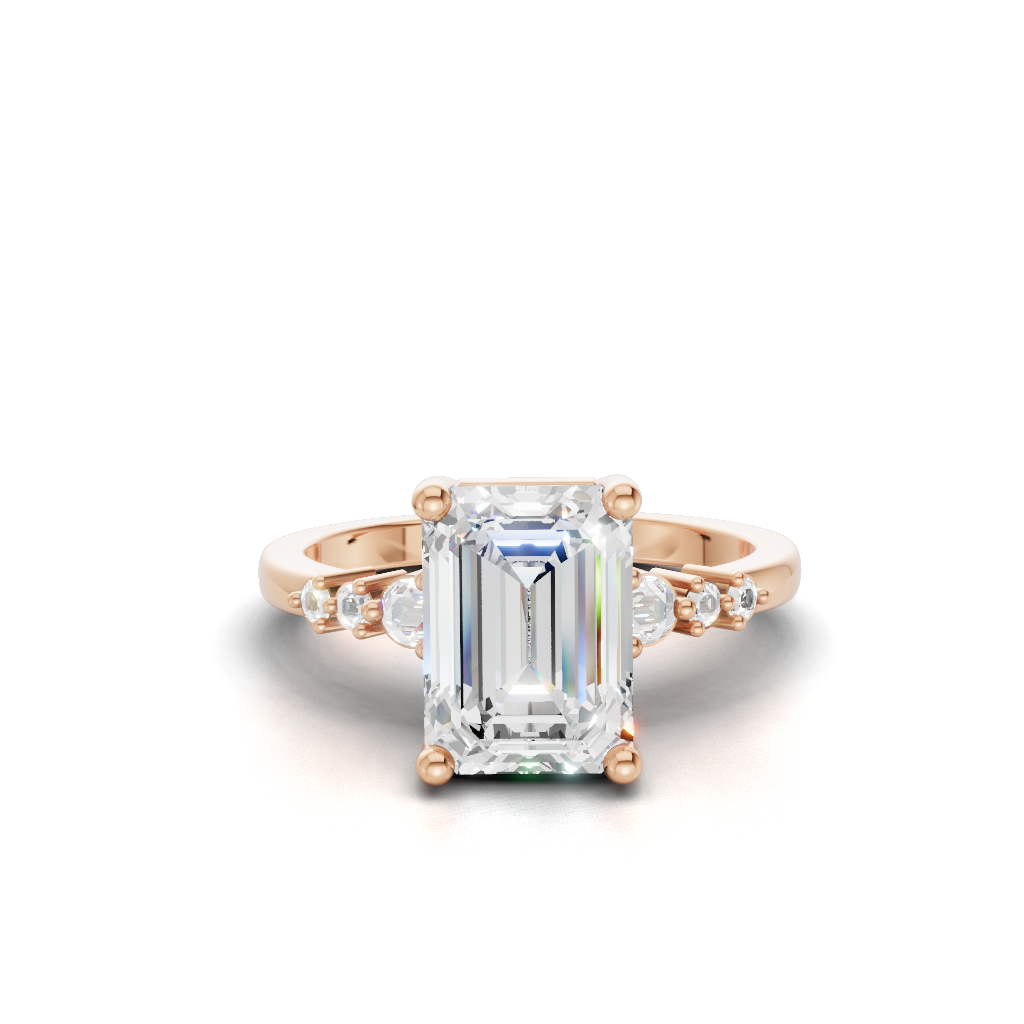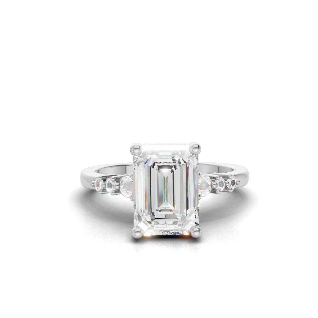 Celebrate your love story with the Serenity Symphony Three Stone Engagement Ring by Merito Diamond. Its three dazzling stones symbolize your past, present, and future with timeless brilliance. A perfect choice for elegant and meaningful proposals.