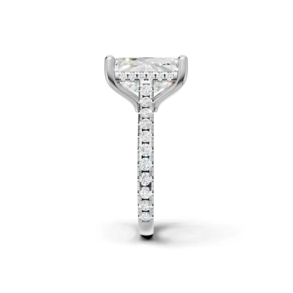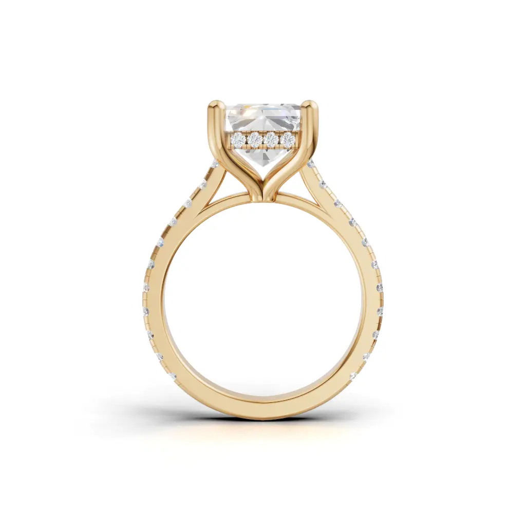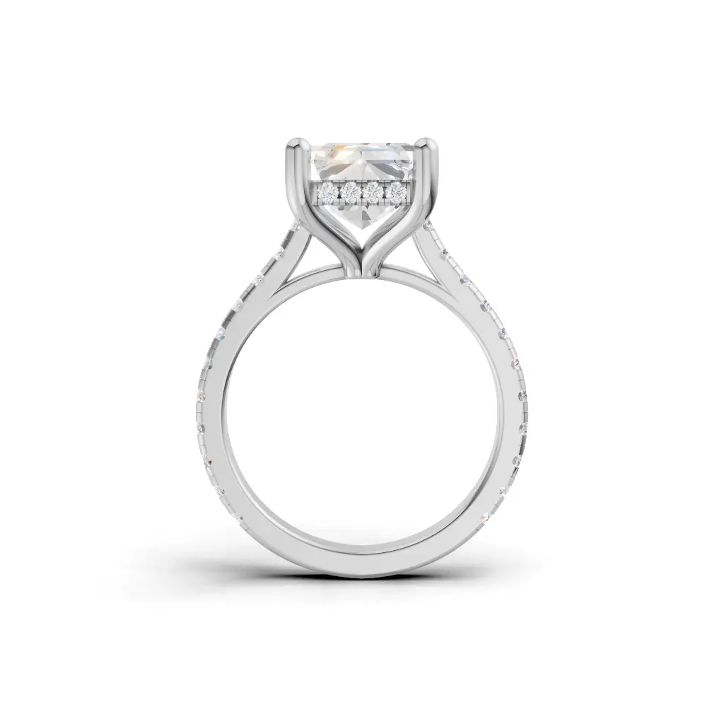 The Twilight Eternal Hidden Halo Engagement Ring by Merito Diamond features a radiant hidden halo that sparkles from every angle. Its elegant design creates a timeless and luxurious symbol of love.