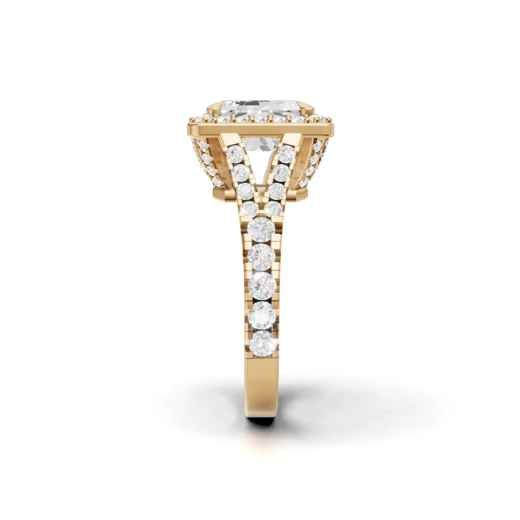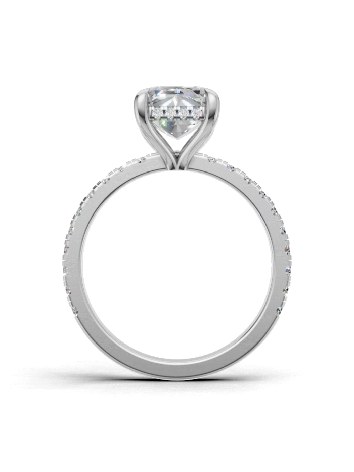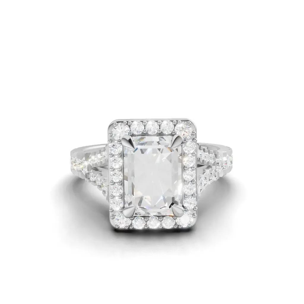 A diamond centerpiece surrounded by shimmering stones, creating a brilliant sparkle from every angle.