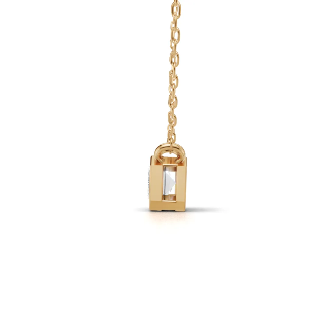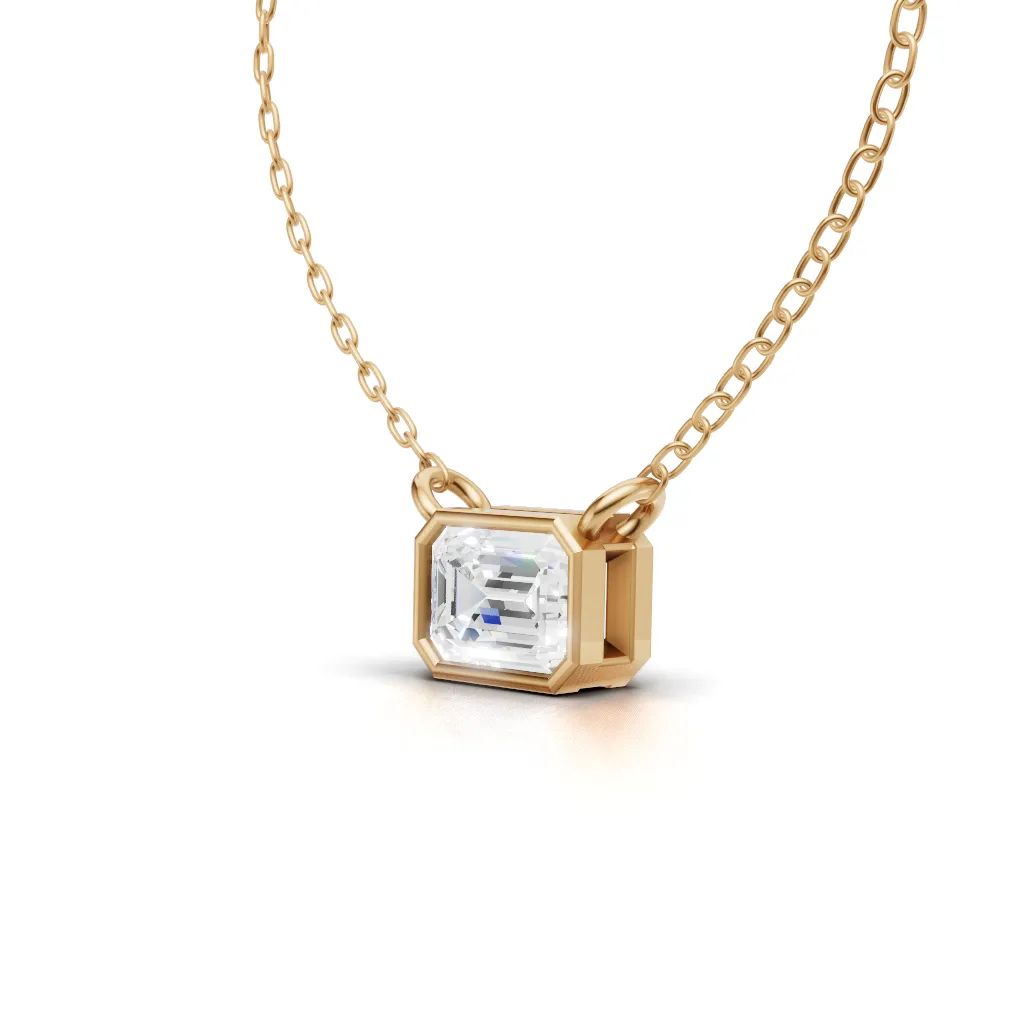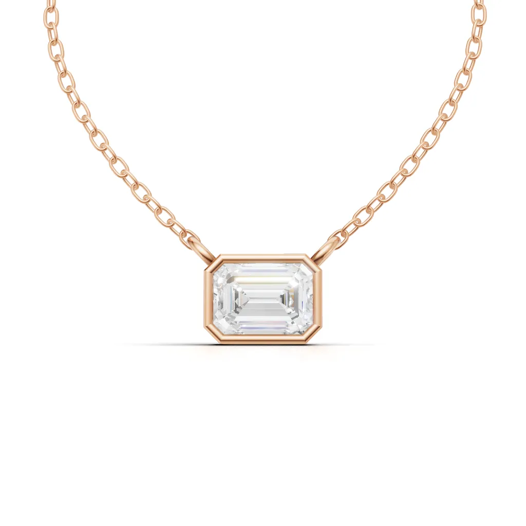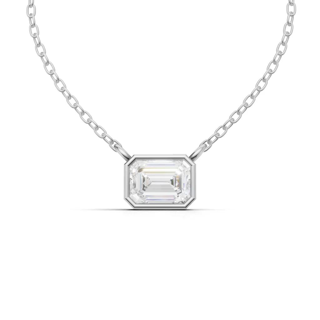 Classic Emerald solitaire pendant with a faceted stone in a sleek bezel setting, perfect for everyday elegance.