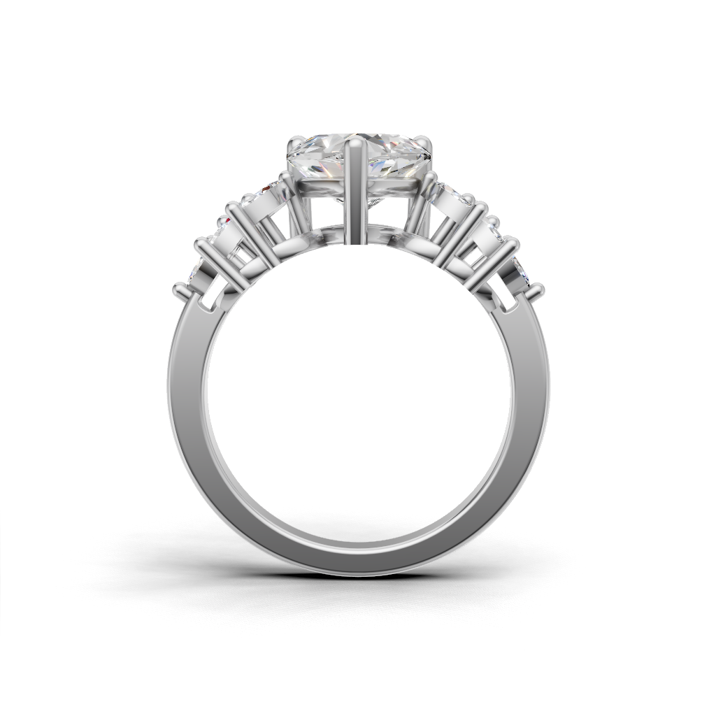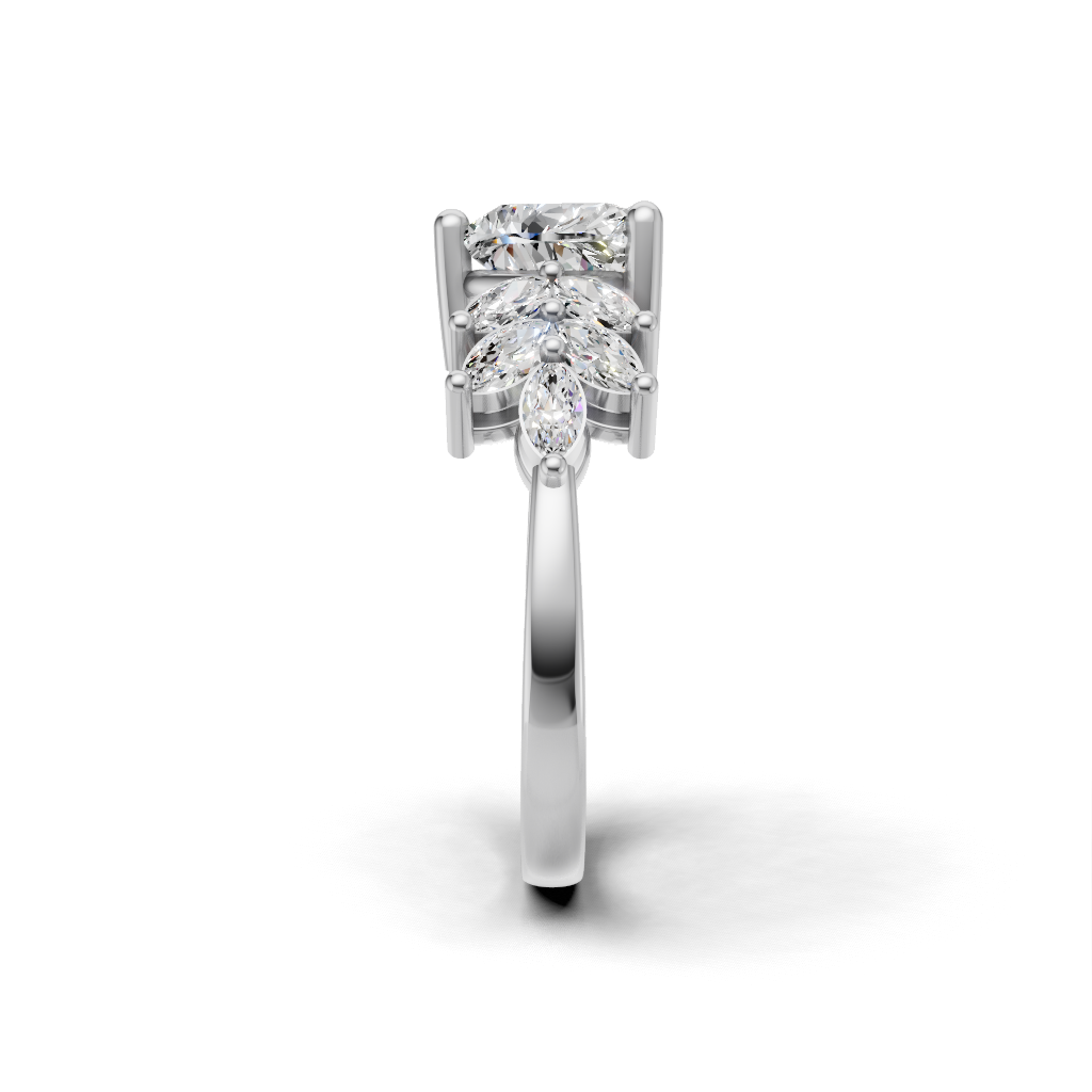 Celebrate your love with the Gleamia Three Stone Engagement Ring by Merito Diamond. Featuring three radiant stones that symbolize your past, present, and future, it offers timeless elegance. A perfect choice for unforgettable proposals and cherished moments.