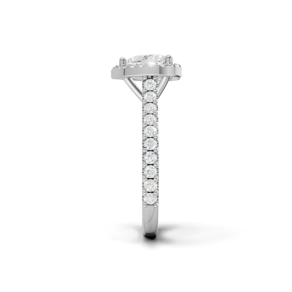Experience luxury with the Velvet Halo Diamond Engagement Ring by Merito Diamond. Featuring a radiant center stone encircled by a dazzling halo, it enhances brilliance beautifully. A perfect choice for elegant and unforgettable proposals.
