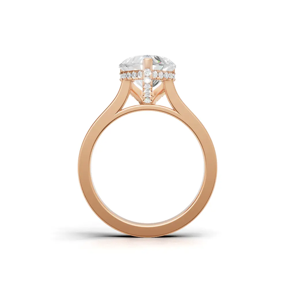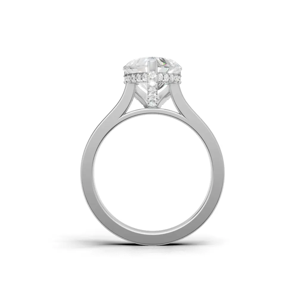 The Lumine Hidden Halo Engagement Ring features a sleek and elegant design, enhanced by a subtle hidden halo that adds extra brilliance. Its refined setting beautifully highlights the center stone, creating a radiant and timeless look. Perfect for a graceful and unforgettable proposal.