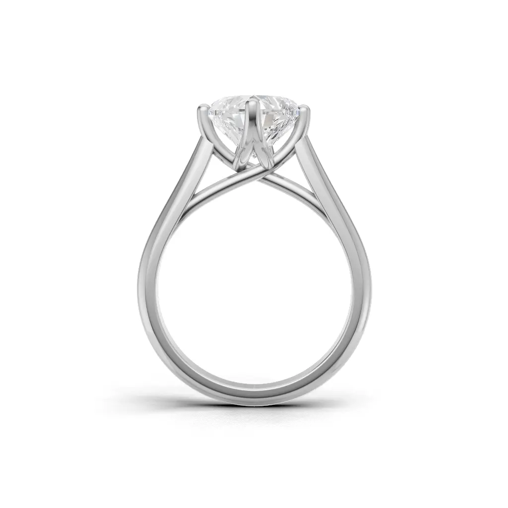 Elegant gold ring featuring a delicate, open-prong setting with graceful crossover support, creating a refined and minimalistic silhouette.
