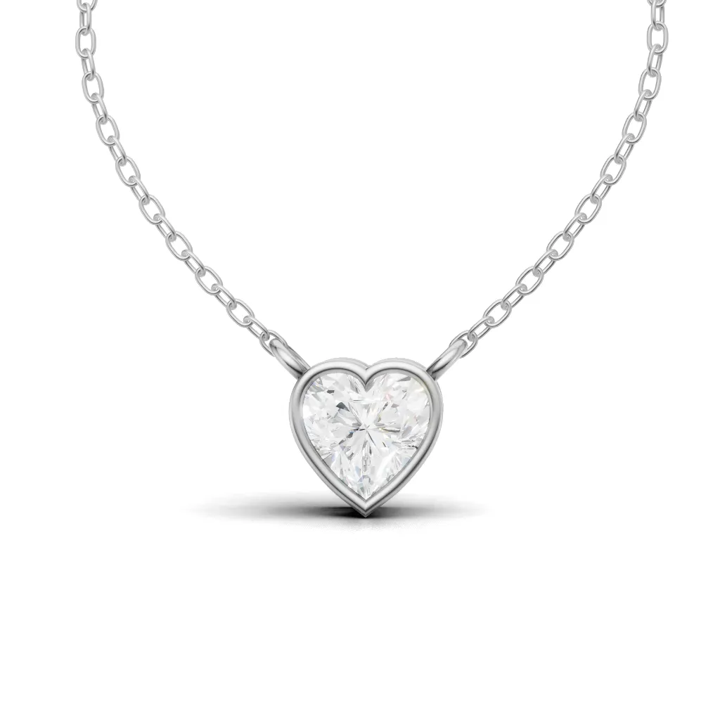 Classic Heart solitaire pendant with a faceted stone in a sleek bezel setting, perfect for everyday elegance.
