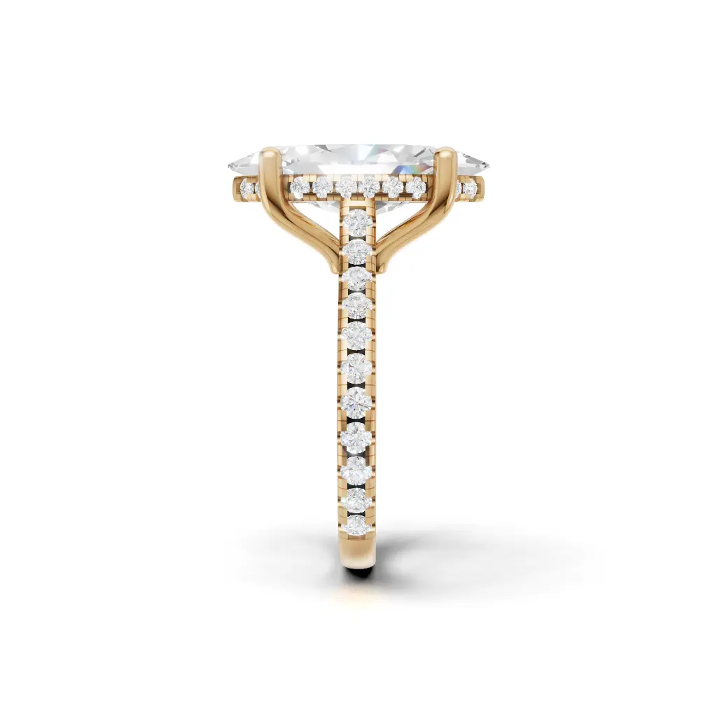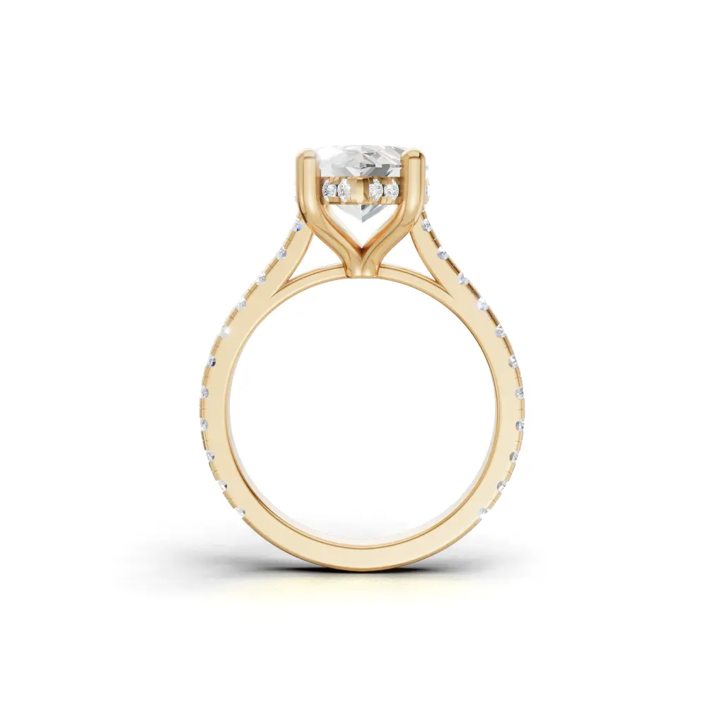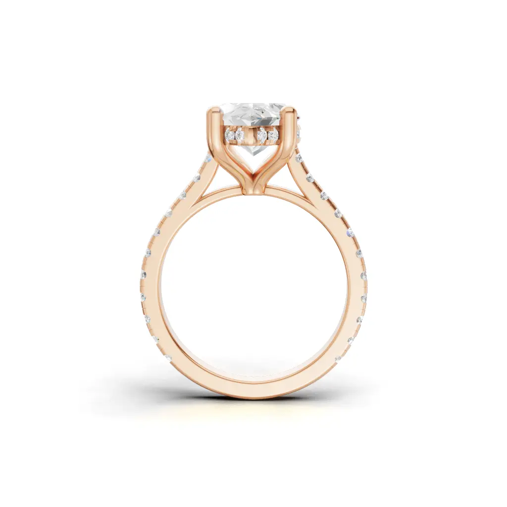 The Twilight Eternal Hidden Halo Engagement Ring by Merito Diamond features a radiant hidden halo that sparkles from every angle. Its elegant design creates a timeless and luxurious symbol of love.