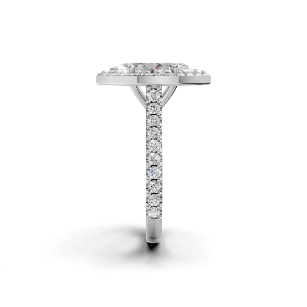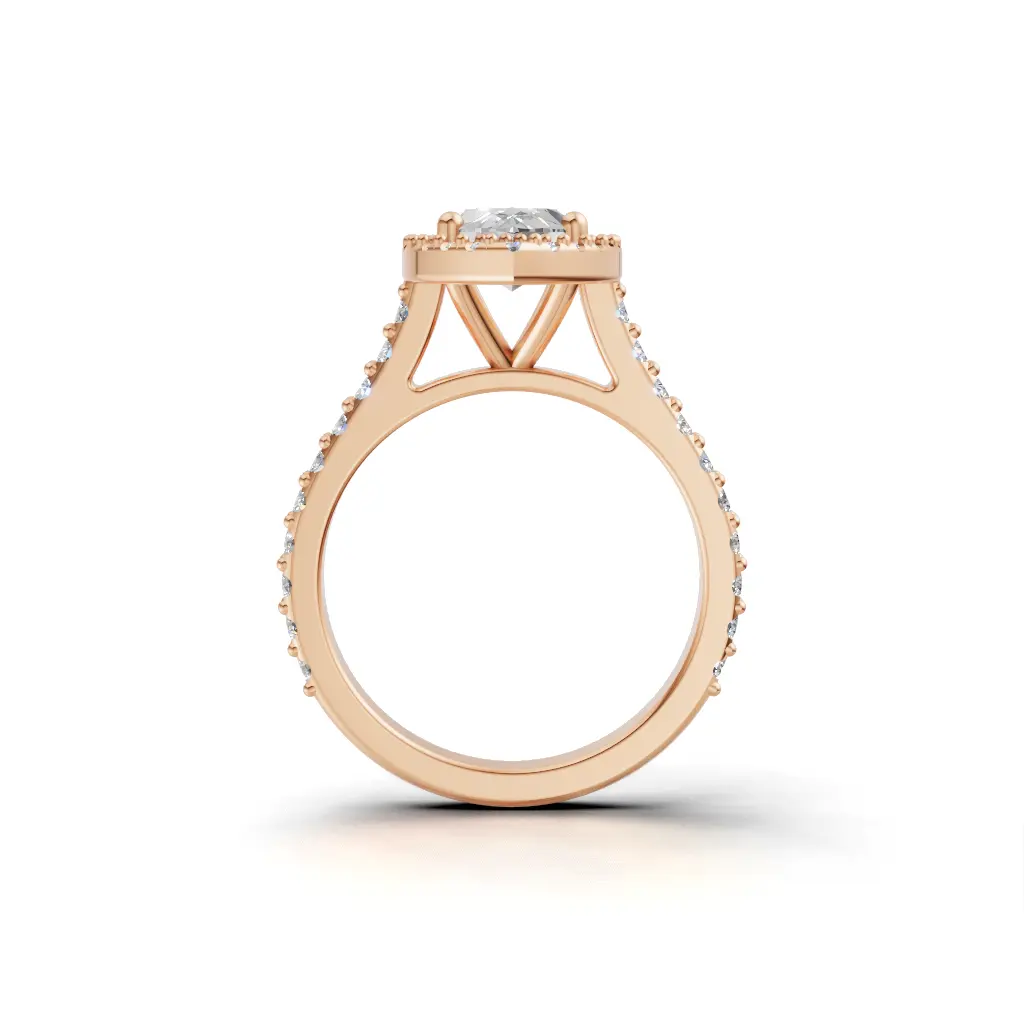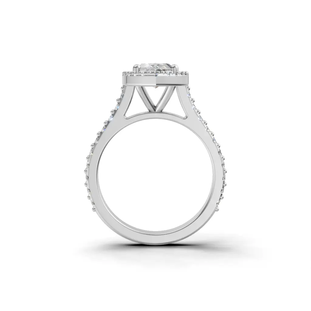 A round-center ring with a smooth curved band and sparkling stones outlining the design for an elegant, refined look.