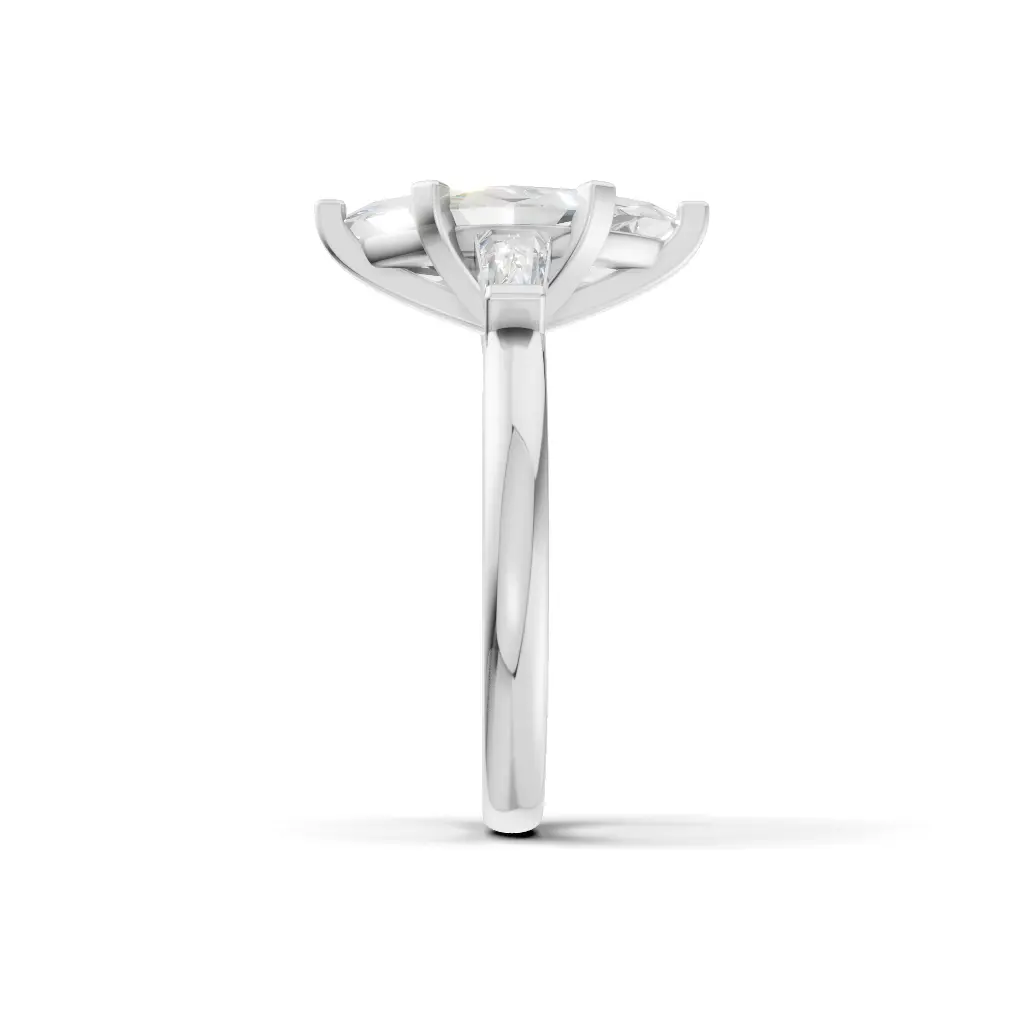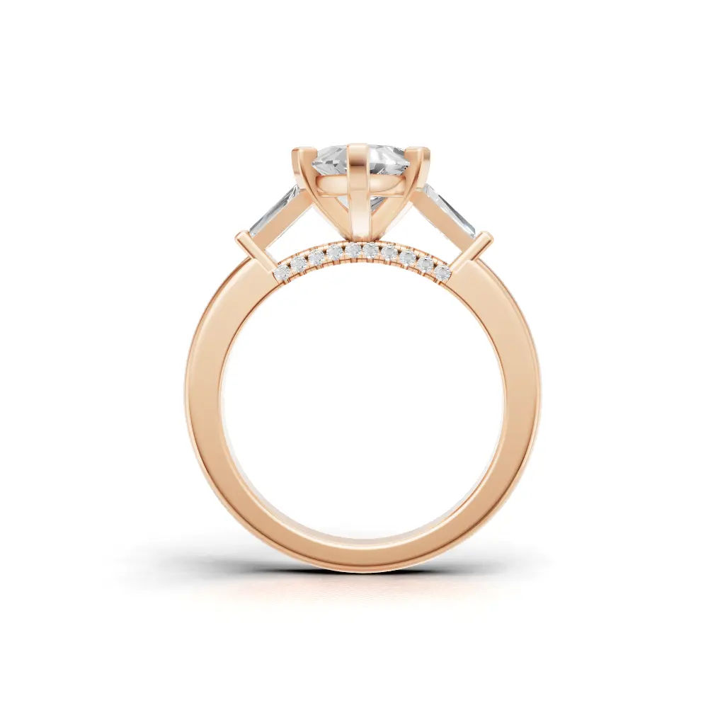 Celebrate timeless love with the Rosella Diamond Three Stone Engagement Ring by Merito Diamond. Its three radiant stones symbolize your past, present, and future with unmatched brilliance. A perfect blend of elegance for unforgettable proposals.