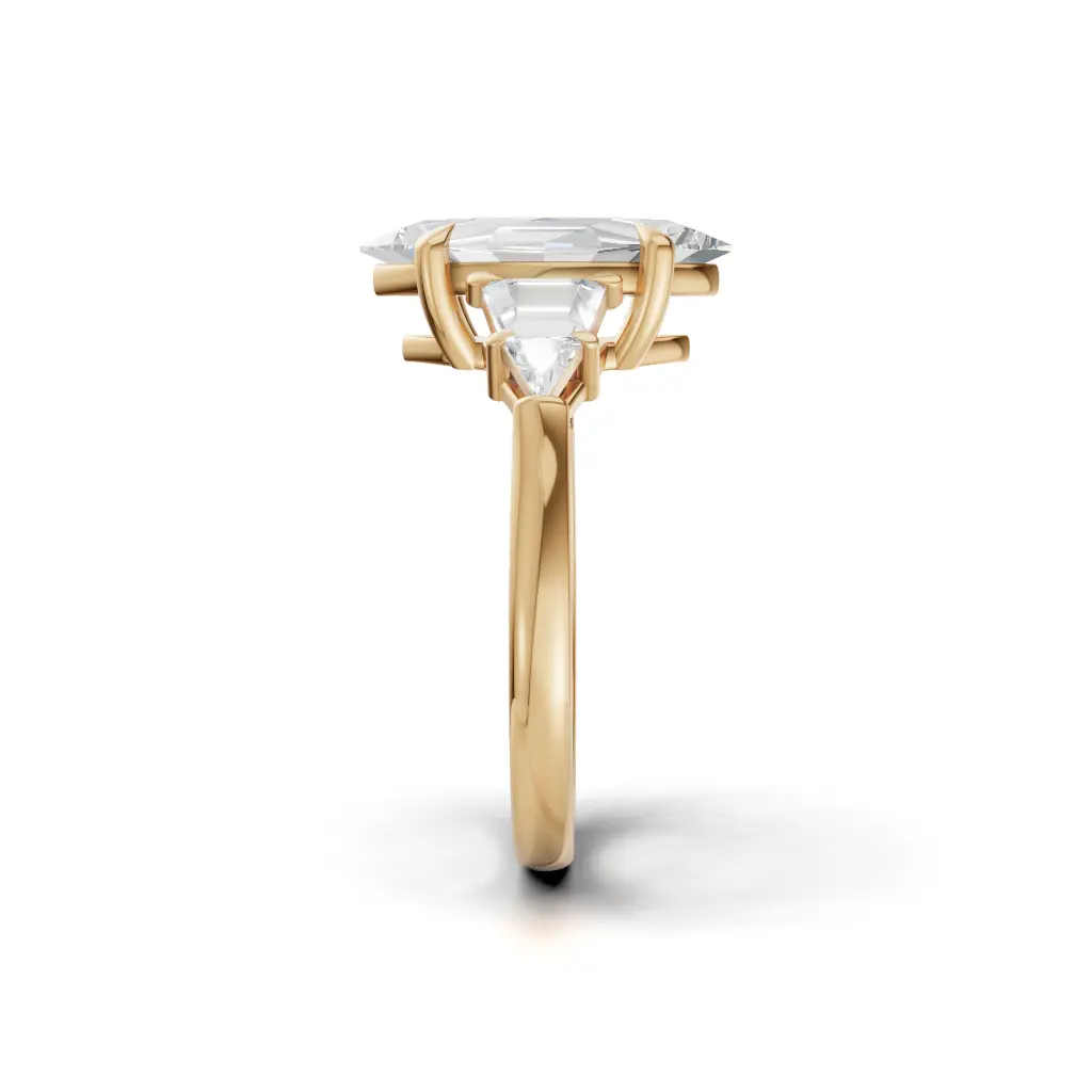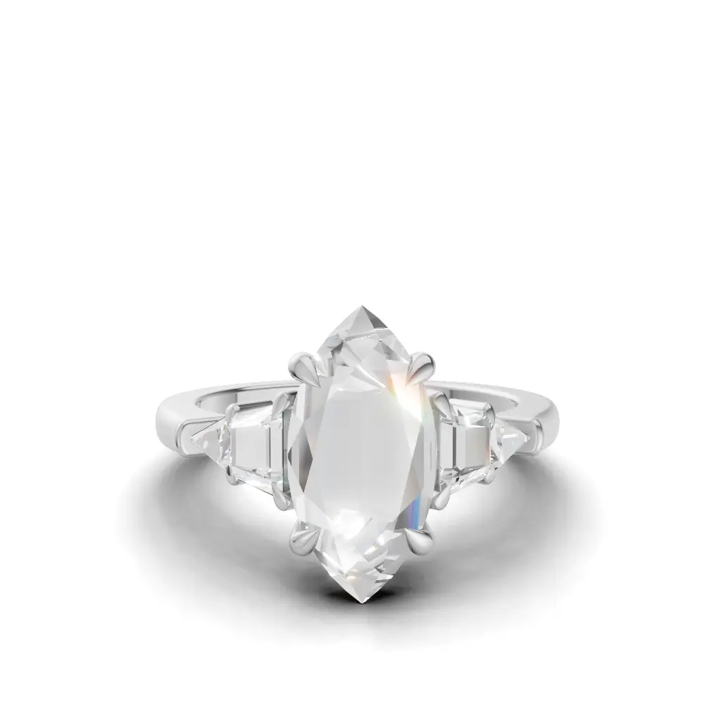 Celebrate your love with the Vexa Trio Three-Stone Engagement Ring by Merito Diamond. Its three dazzling stones symbolize past, present, and future, offering timeless elegance. Ideal for unforgettable proposals and cherished moments.