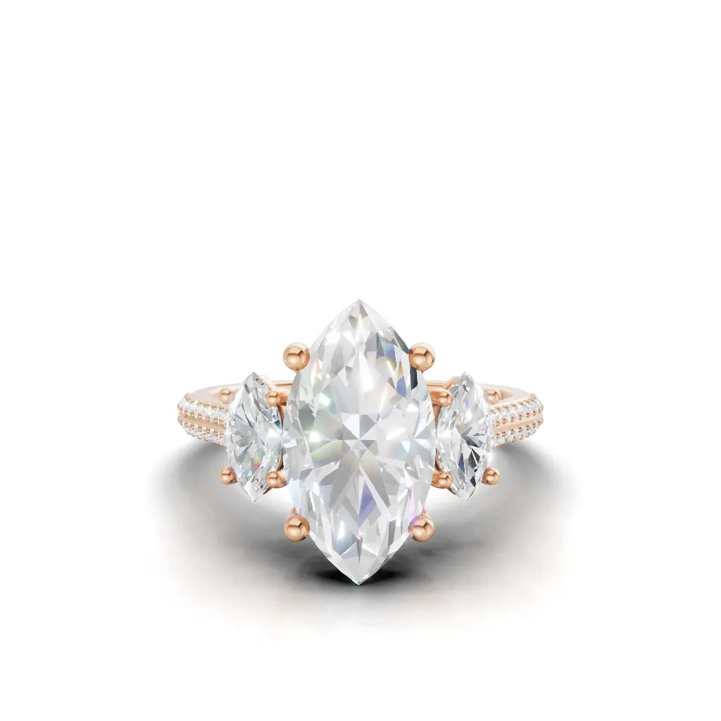 Celebrate enduring love with the Amor Prism Three-Stone Engagement Ring by Merito Diamond. Crafted in elegant gold, it features three sparkling stones symbolizing past, present, and future. A timeless, luxurious design perfect for a meaningful proposal.