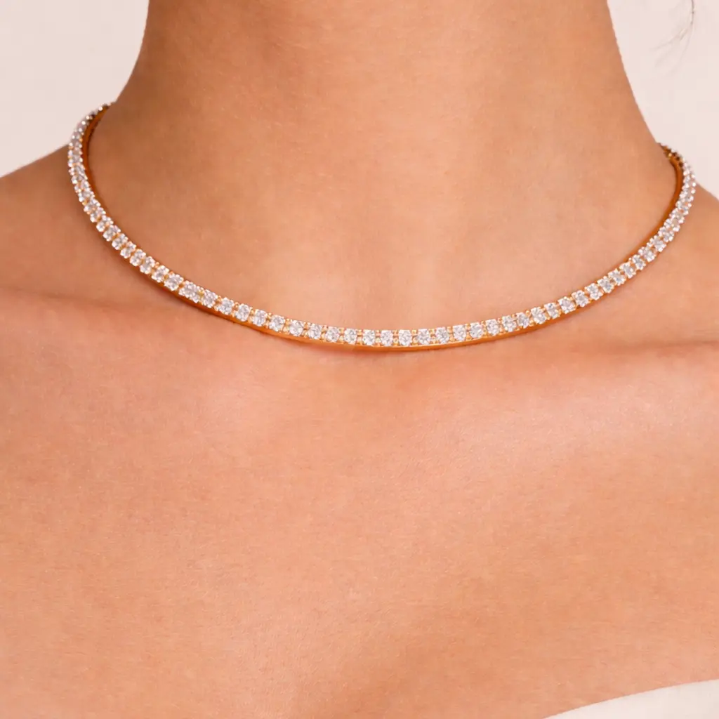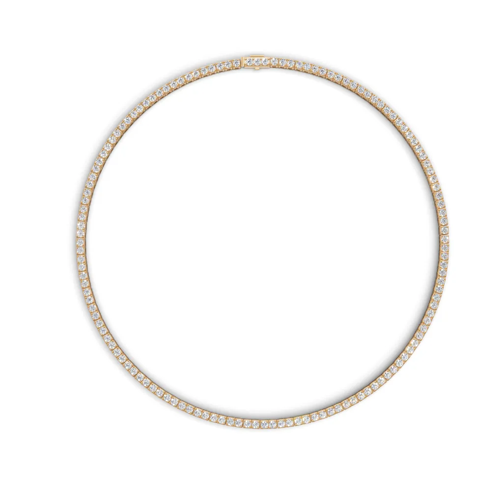 Meticulously aligned diamonds form a smooth, luminous collar in gold, creating a bold yet refined statement that elevates both day and evening looks.