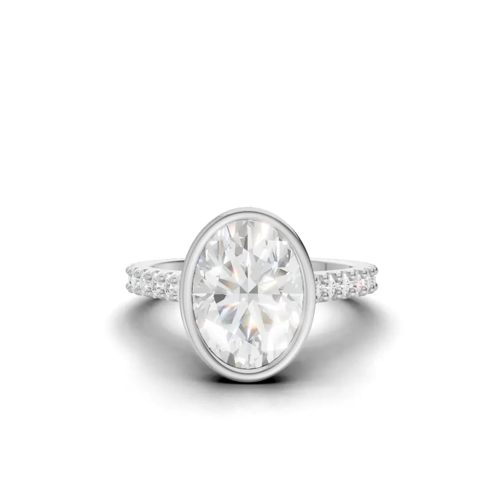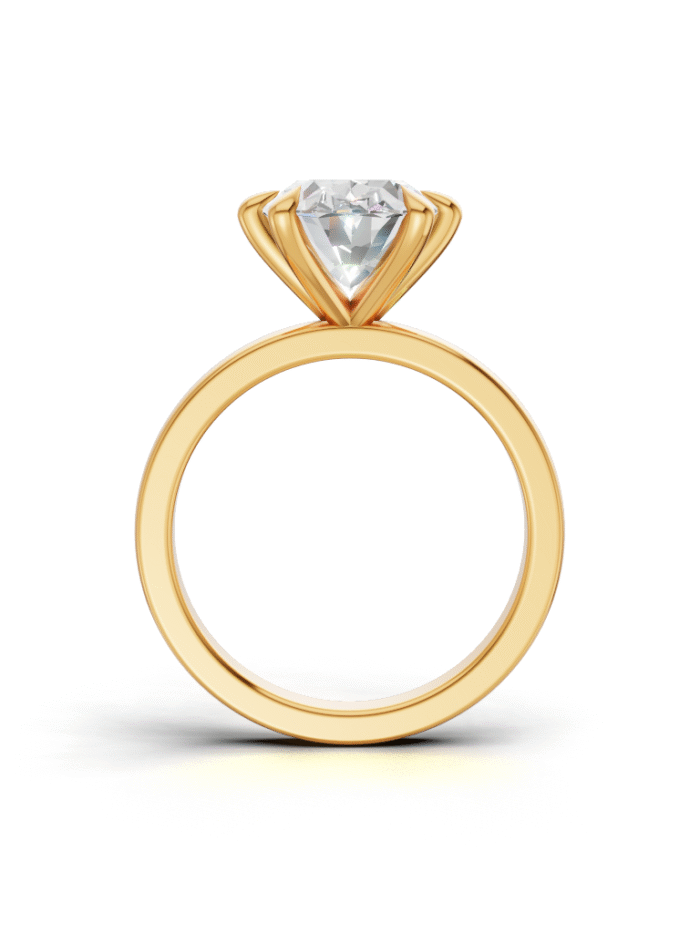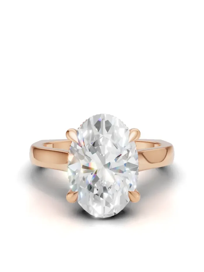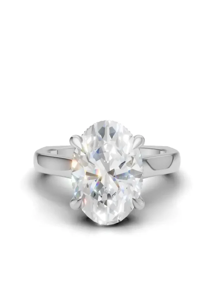 A regal ring with a tall, graceful profile lined with sparkling stones, giving it a true queen’s elegance from every angle.