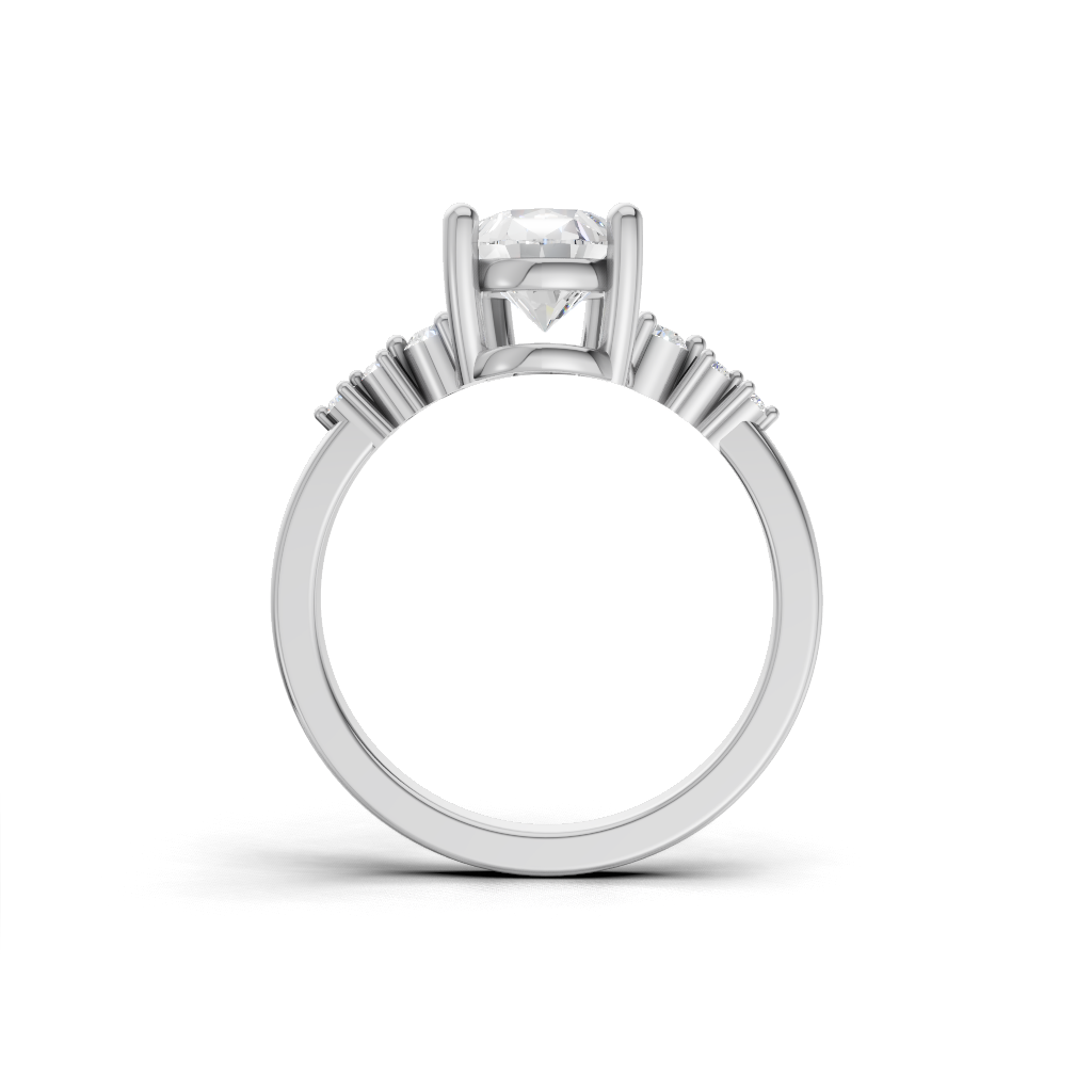A graceful white-gold ring that adds a soft, radiant sparkle to her beautiful hand.