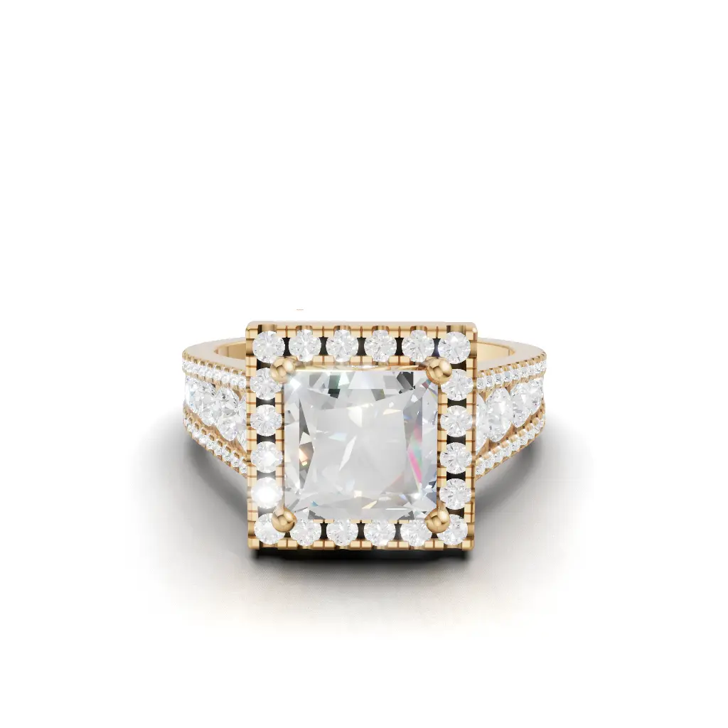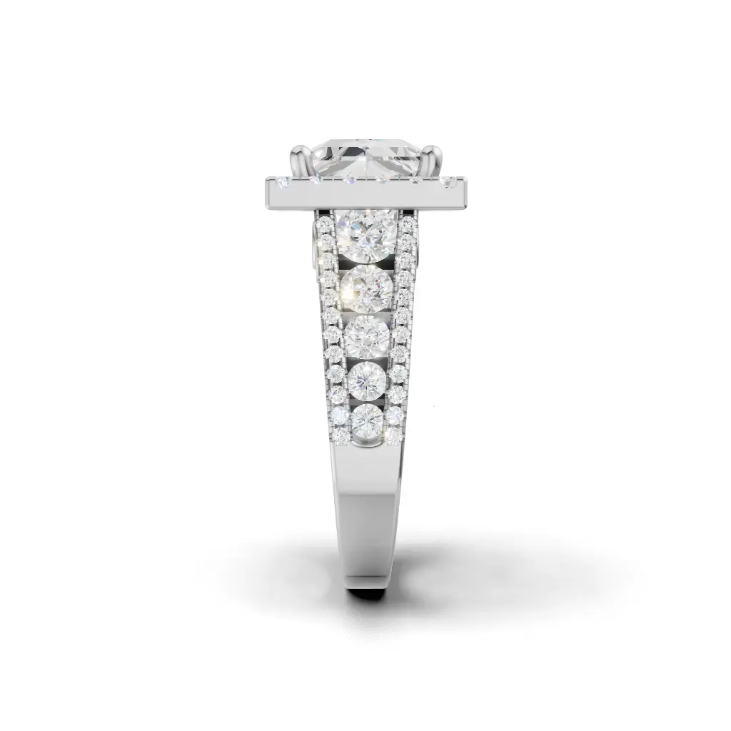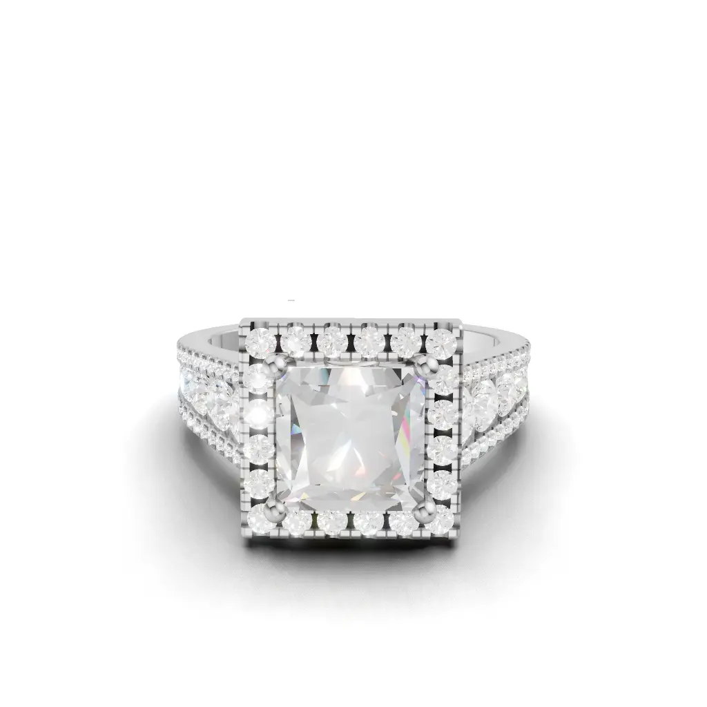 The Empress Halo Engagement Ring by Merito Diamond shines with a stunning halo setting and timeless elegance. A perfect choice to make your special moment truly memorable.