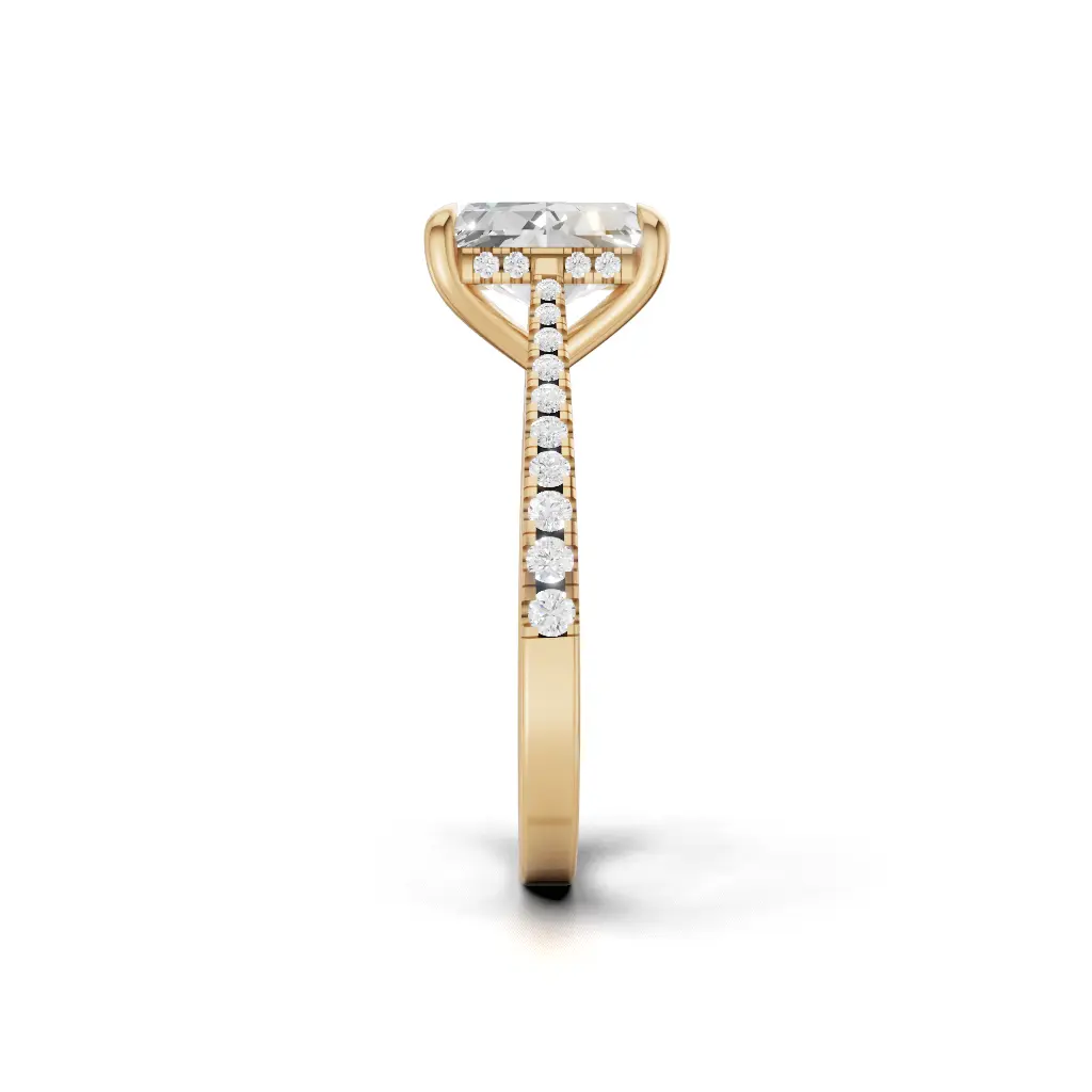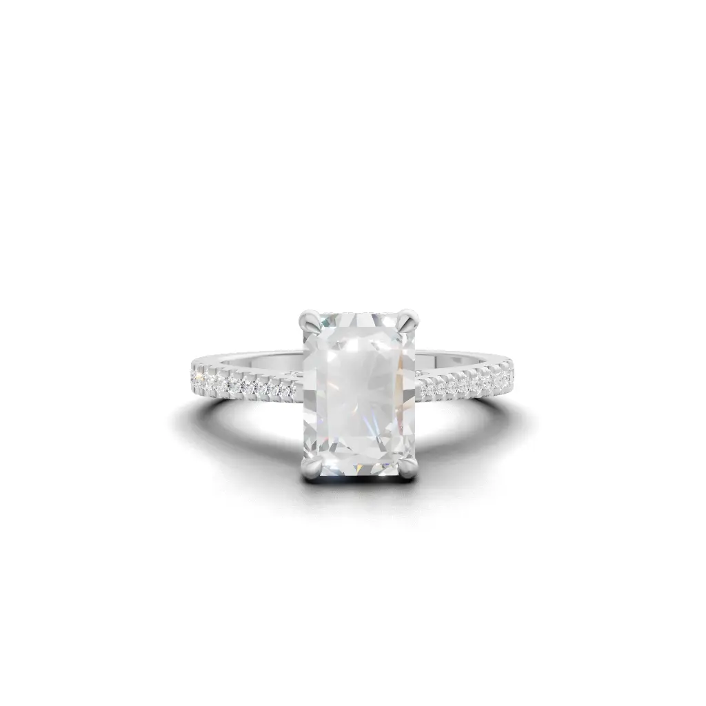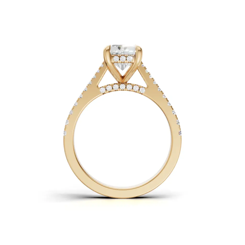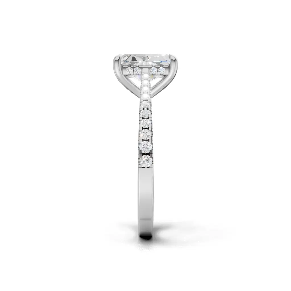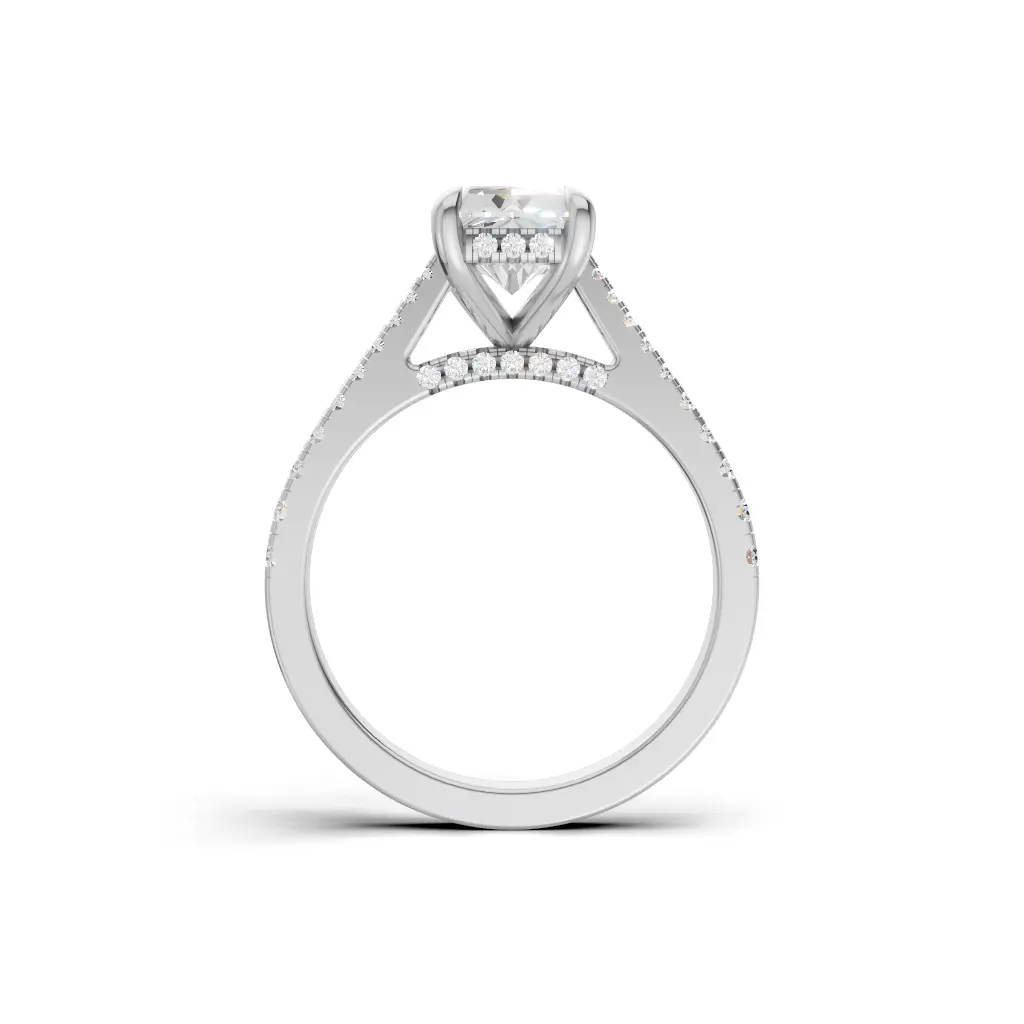 The Enchanted Hidden Halo Engagement Ring by Merito Diamond features a secret halo that sparkles from every angle. Its elegant design creates a timeless, romantic statement of love.