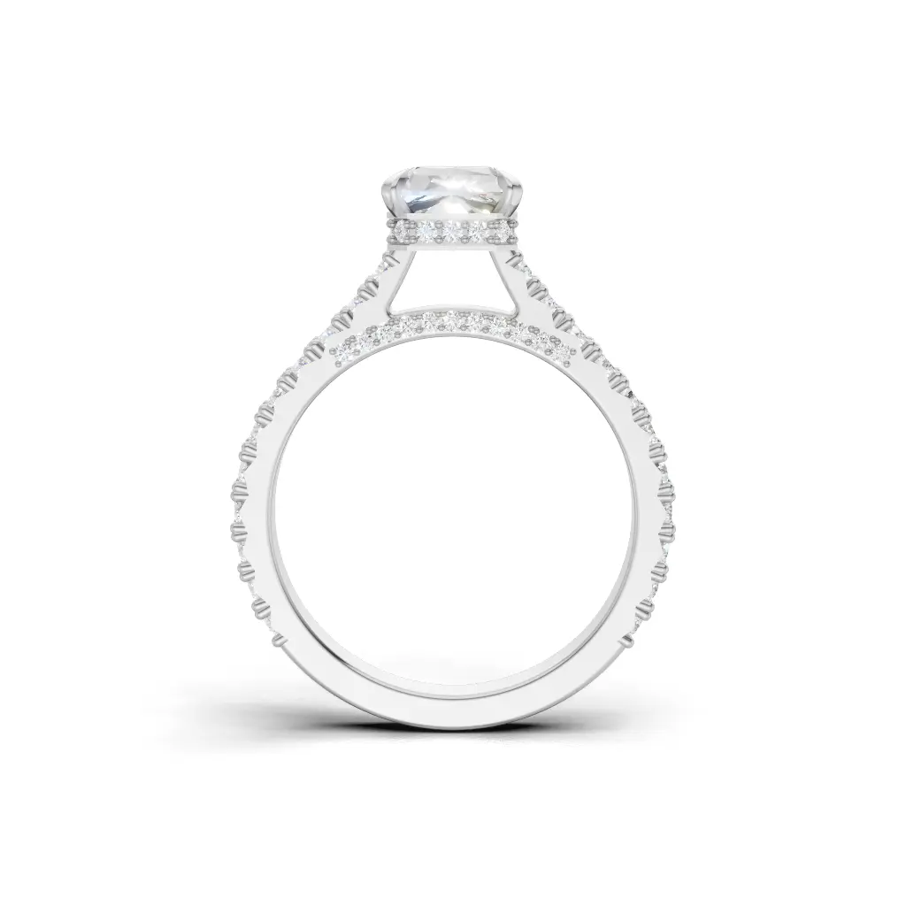 Smooth curved band beautifully highlighted with small shimmering stones for a refined shine.