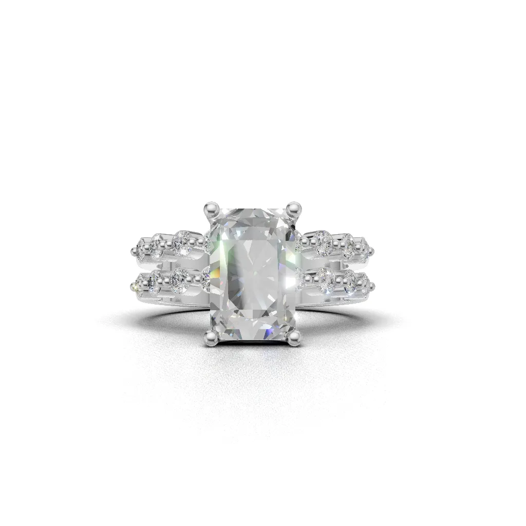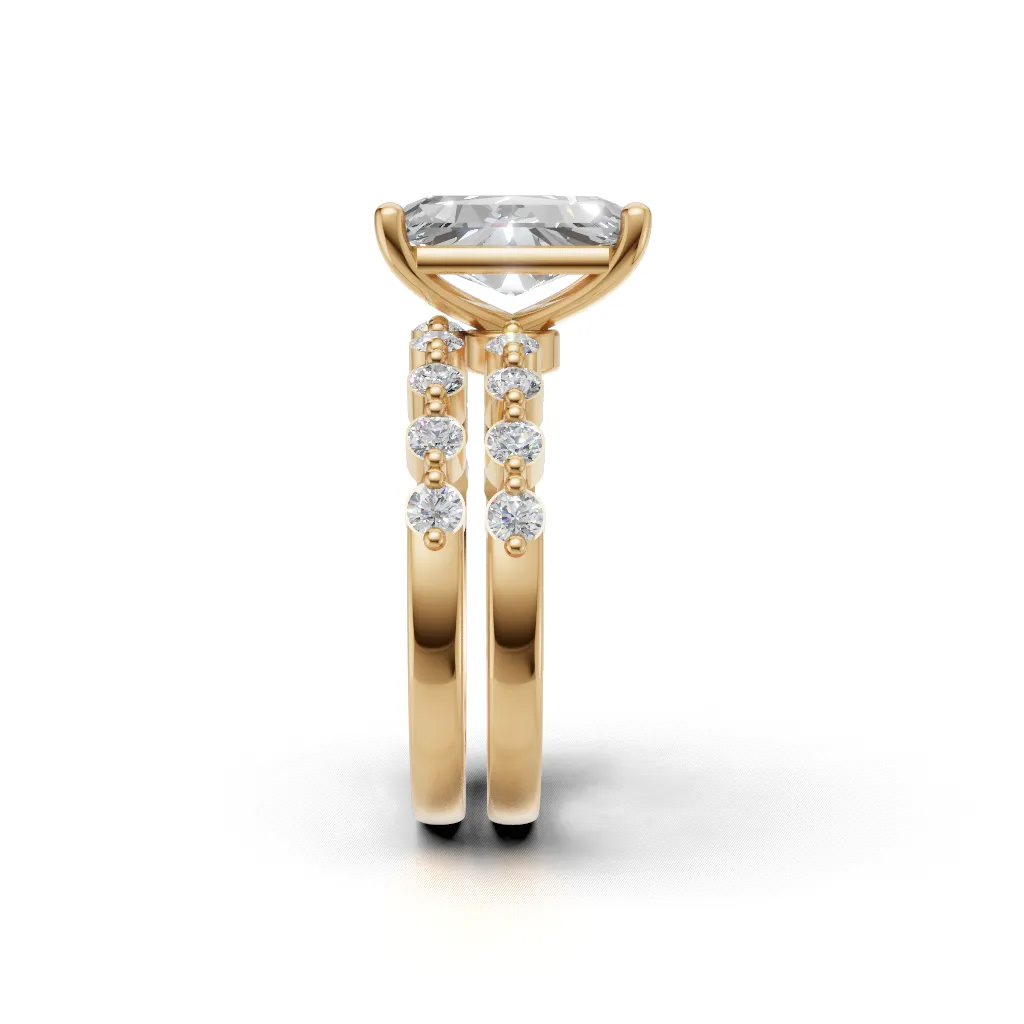 The precision-engineered flush setting integrates the solitaire and diamond band into a simple, architecturally refined silhouette with unwavering brilliance.