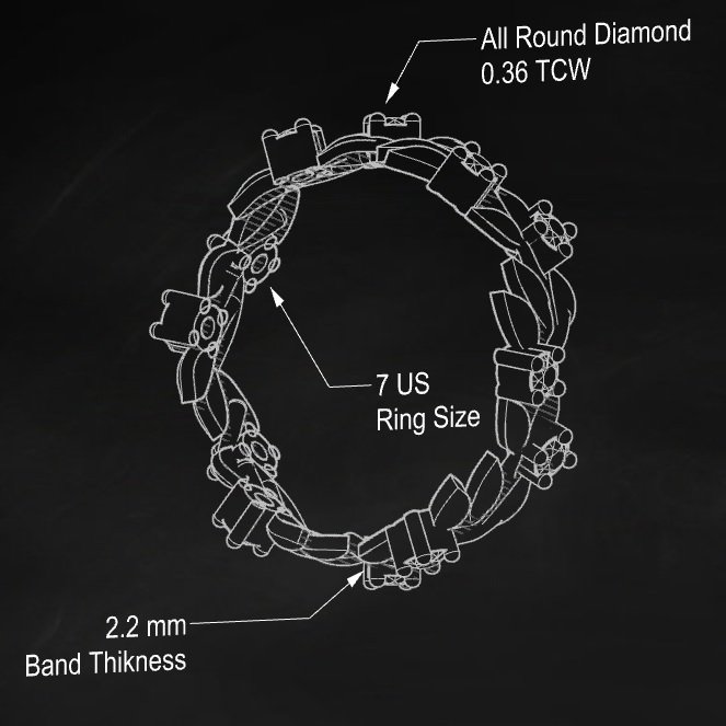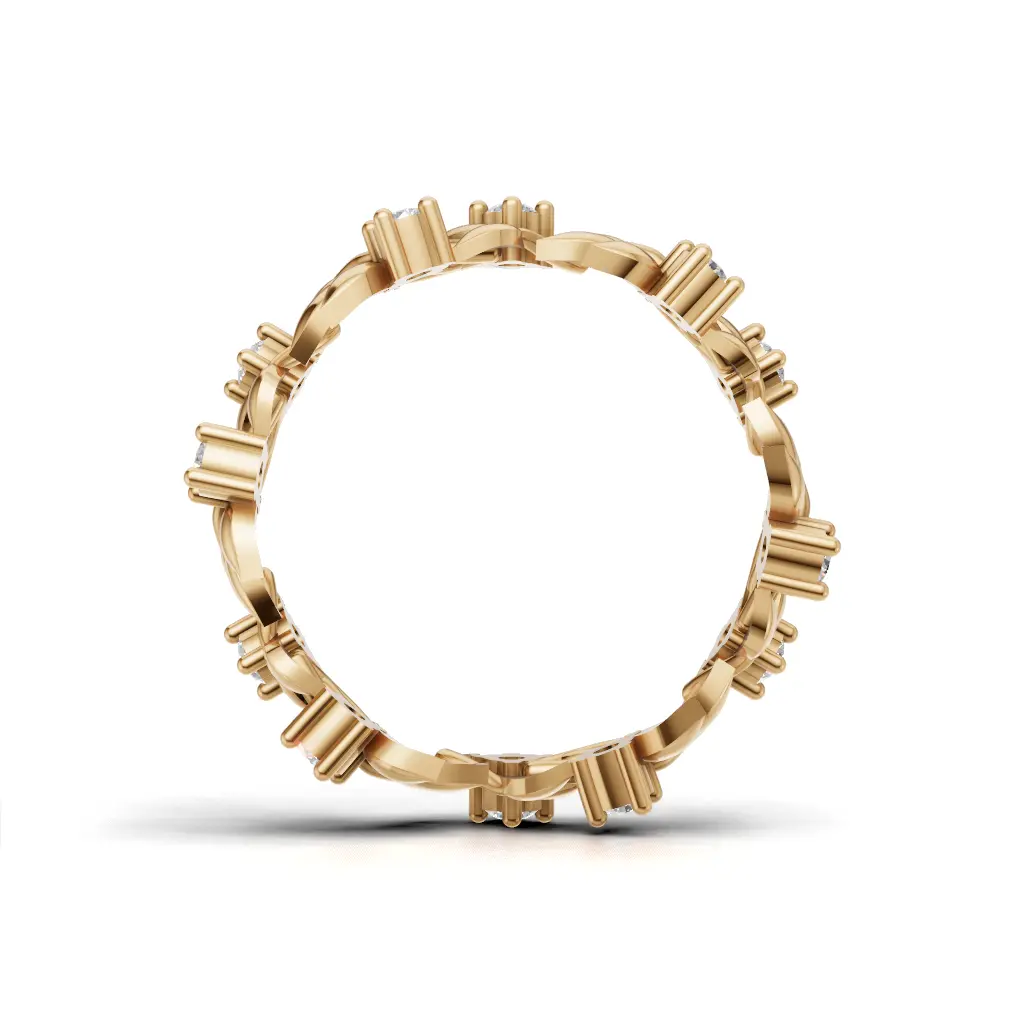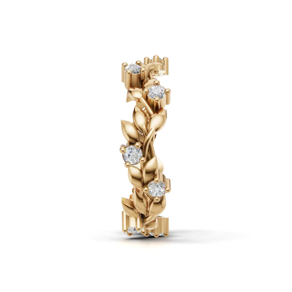 The Flora Vine Band by Merito Diamond is inspired by flowing natural vines and floral elegance. Adorned with sparkling diamonds, it represents growth, harmony, and timeless beauty. Delicate yet luxurious, it is perfect for weddings, romantic occasions, or refined everyday elegance.