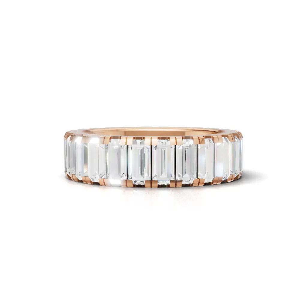 The Imperial Baguette Eternity by Merito Diamond showcases a continuous line of sleek baguette-cut diamonds, delivering a refined, modern look with a regal touch. Perfect for weddings or elevated everyday elegance.